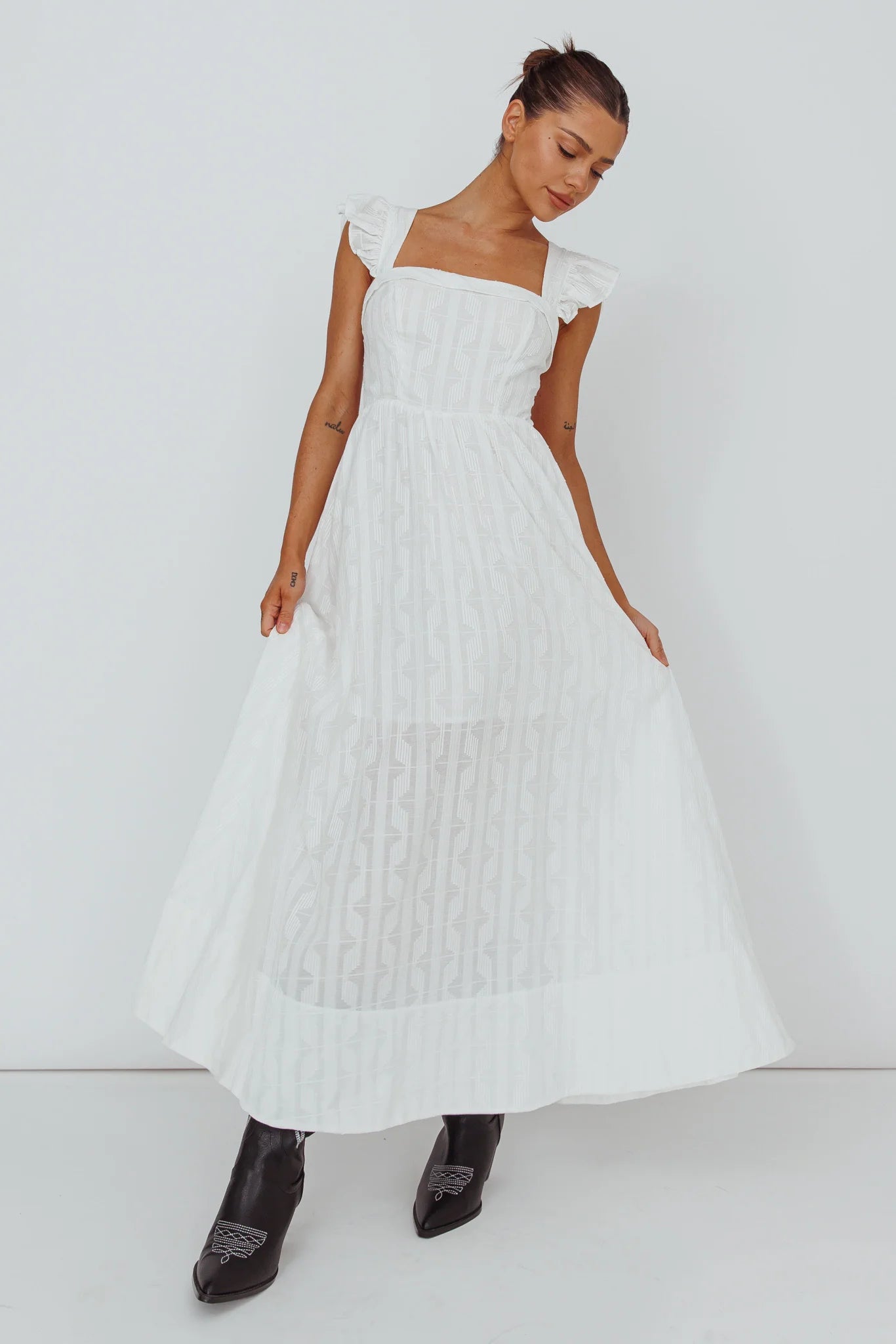 We are totally crushing on our gorgeous Greatest Hits maxi dress. With cut-out back and ruffle straps, this one is sure to turn heads. Perfect for Saturday brunch with your besties. Team it with hessian wedges and a tote for a chic look we are loving.