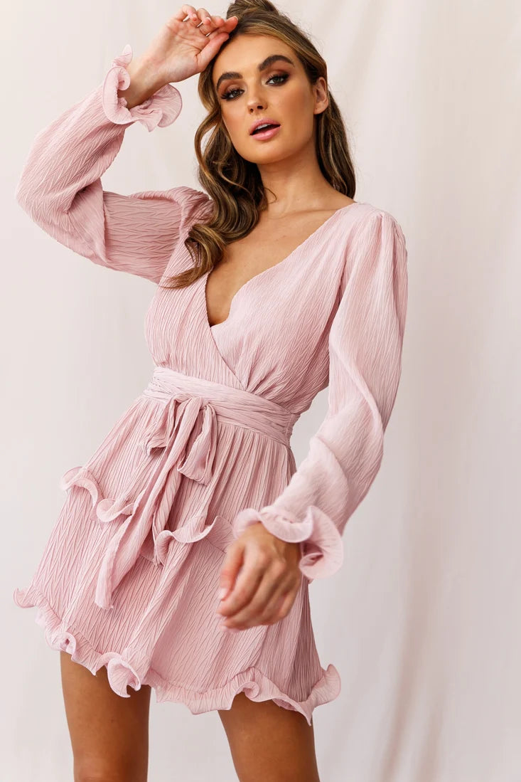 Turn heads in our pretty and ultra feminine Greta dress. Featuring a V-neckline, flattering wrap front and tiered ruffles around the skirt. We love the soft chiffon fabric with unique crinkled texture. Team it with some strappy heels and gold hoops for a look we are loving.