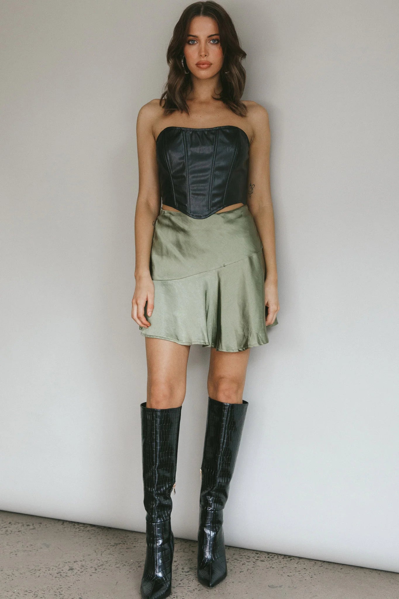 We are in love with our dreamy Gwyneth skirt. Featuring a satin fabric and A-line cut. It's perfect for your 9-5 or happy hour with your girls. Team it with boots and a corset top for an on-trend look we are loving.