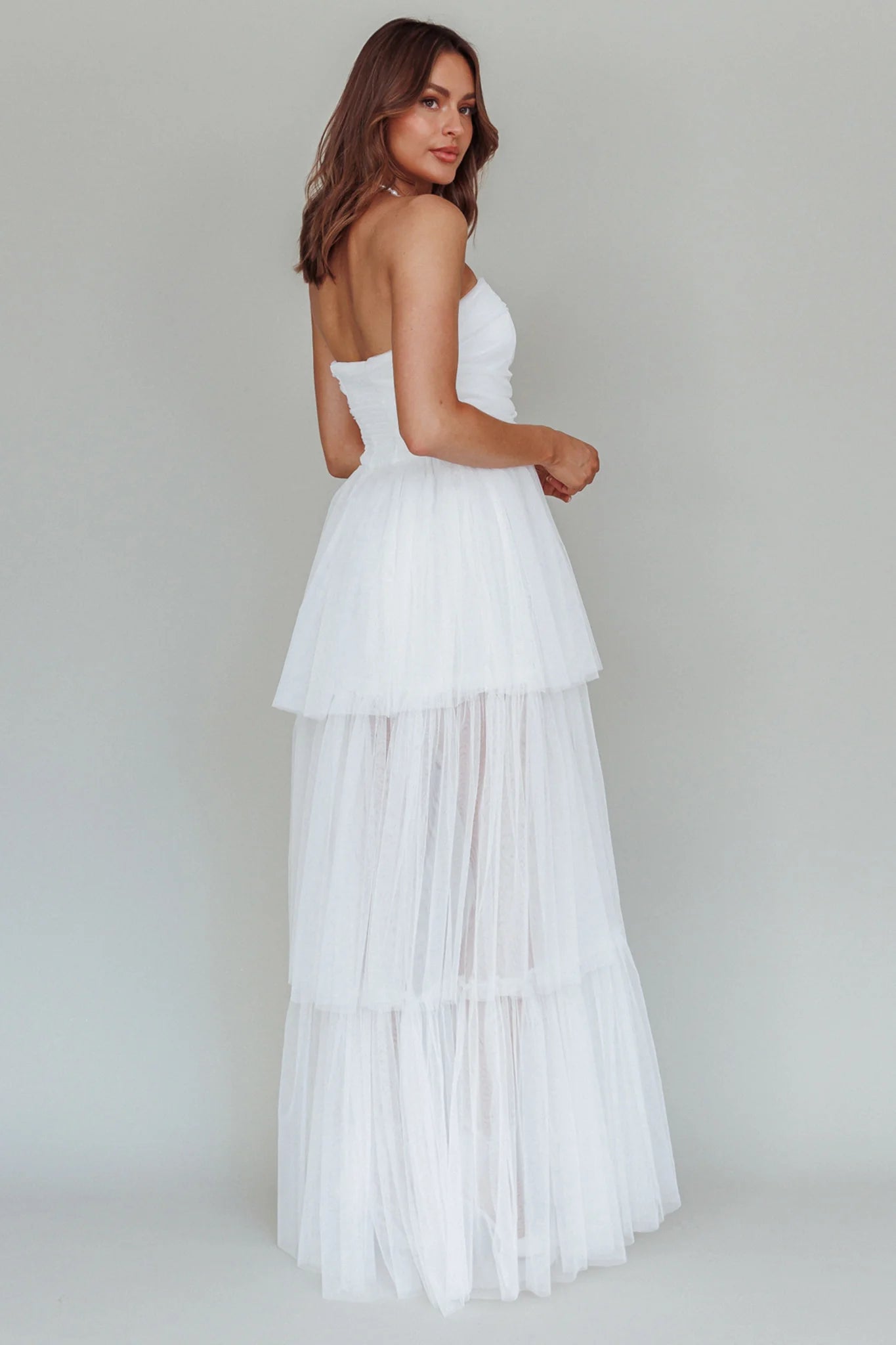Make an entrance in our stunning Haeven maxi dress. We are in love with the romantic, cascading mesh tiers and classic strapless style. Perfect for a wedding or special occasion. Team it with white heels and a clutch for an unforgettable look.
