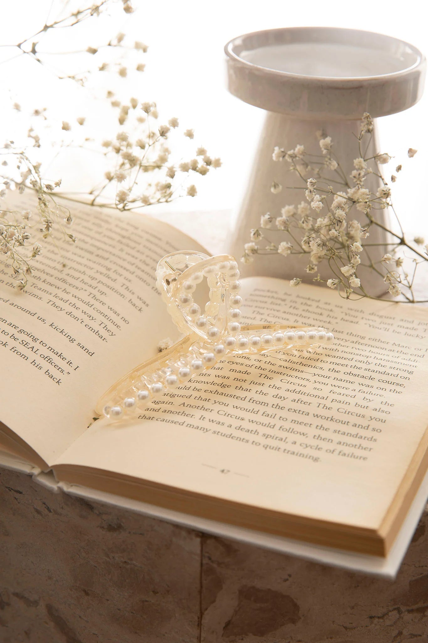 Hold your hair back in style with our gorgeous Hannah hair clip! Featuring a clear acrylic and faux pearl embellishment. This would look amazing with loose curls and our Laney dress!