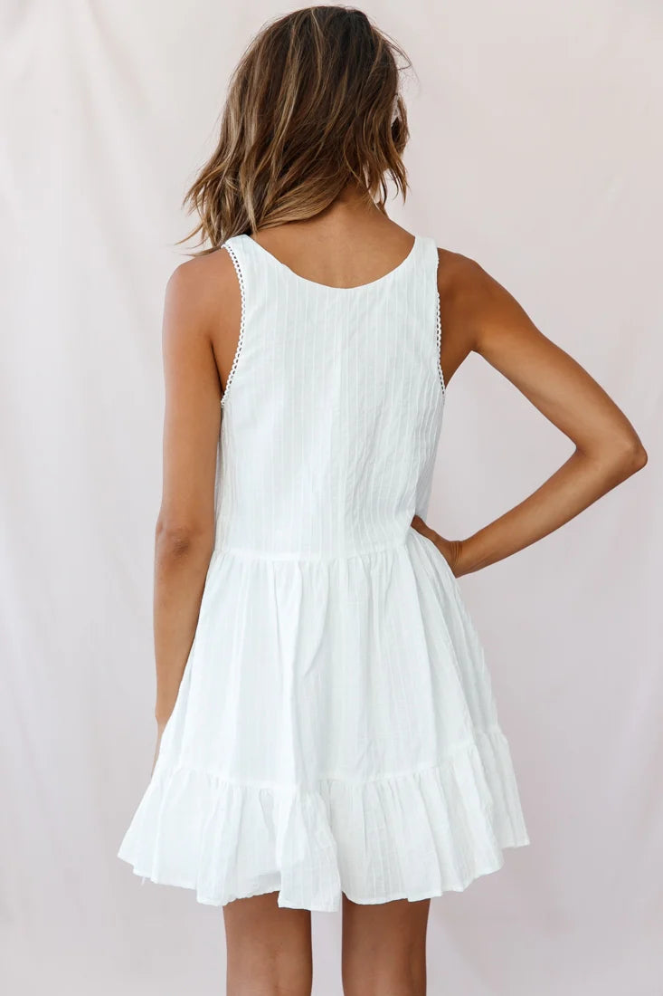 Stylish yet comfortable, our Heather swing dress is a must have for those warmer weather days. Perfect for throwing on over your bikini and hitting the beach or wear it to a Summer's day picnic. Fully lined, it features a loose, flattering swing style, round neck and frill hemline. Pair it with a cute head scarf and some espadrille wedges or try tennis shoes for a more casual look.