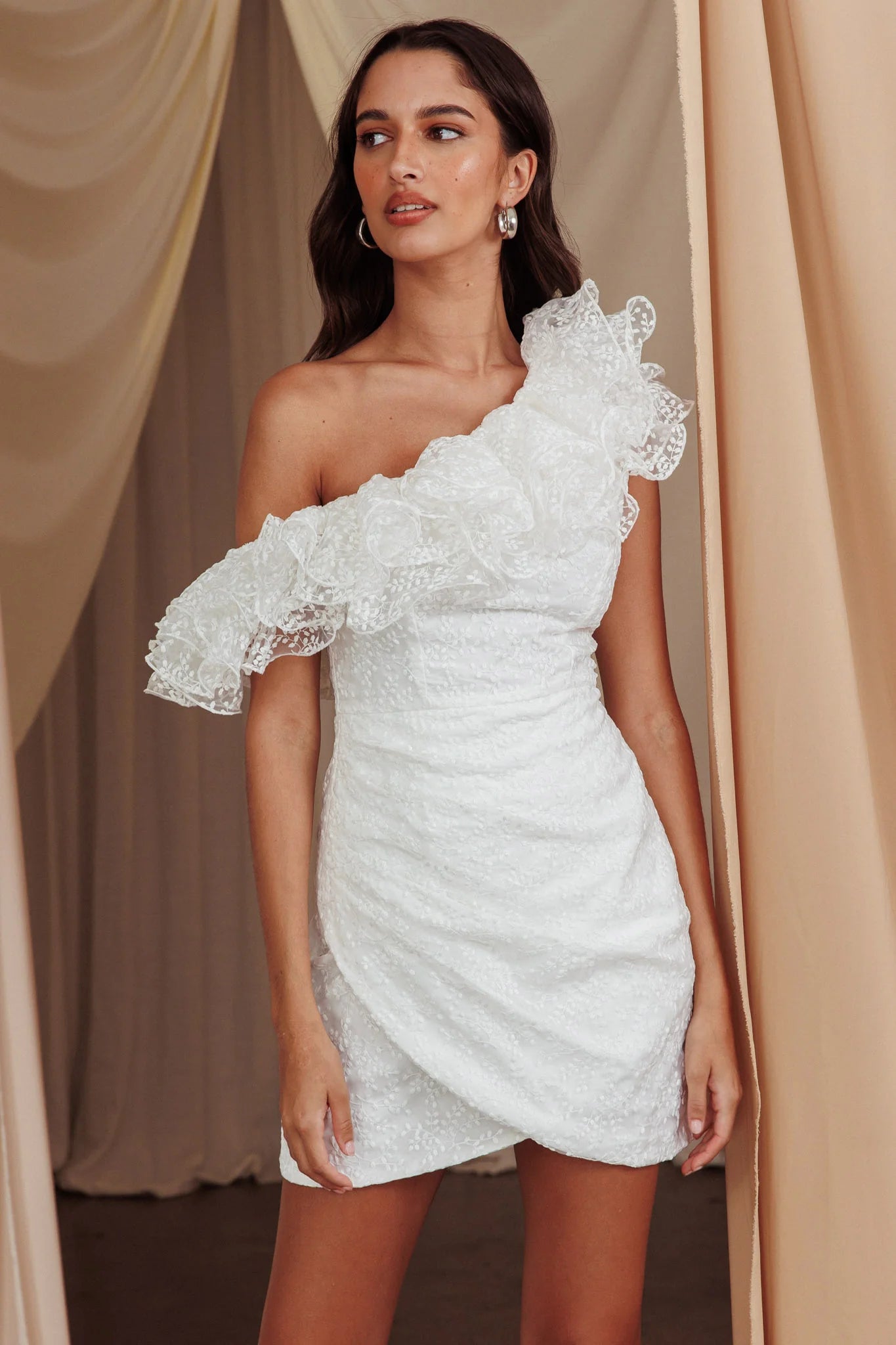 Make an entrance in our stunning Hollyn mini dress. We are in love with its gorgeous ruffle neckline and chic, one-shoulder style. Perfect for a wedding or graduation! Team it with strappy, white heels and a clutch for an unforgettable look.