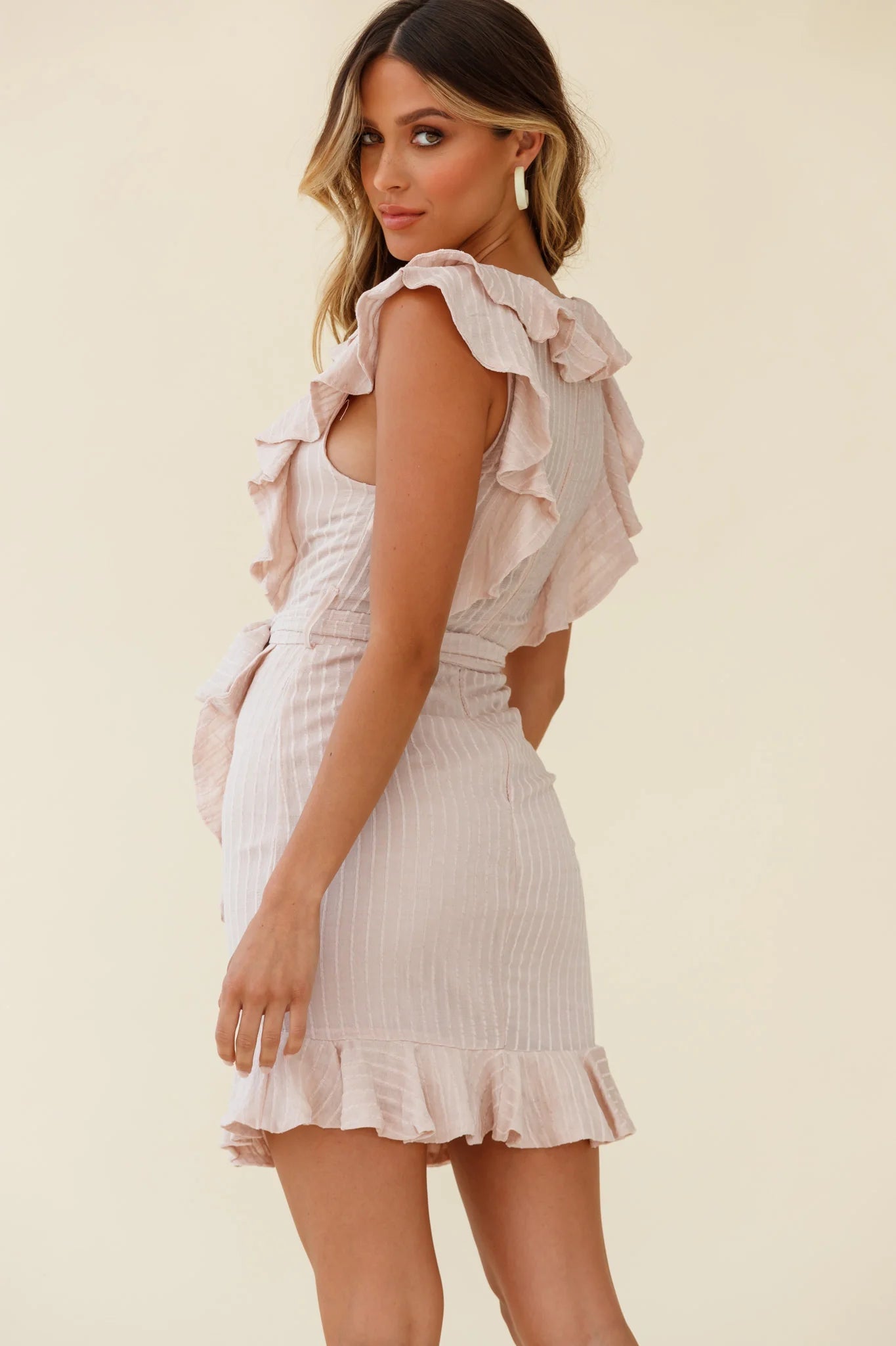 Make an entrance in our gorgeous Honor dress. Lined in the skirt and bust, it features a pretty ruffle V-neckline, faux wrap skirt design and fabric waist tie. Wear it to high tea with your besties teamed with nude pumps and a simple clutch. Classy!