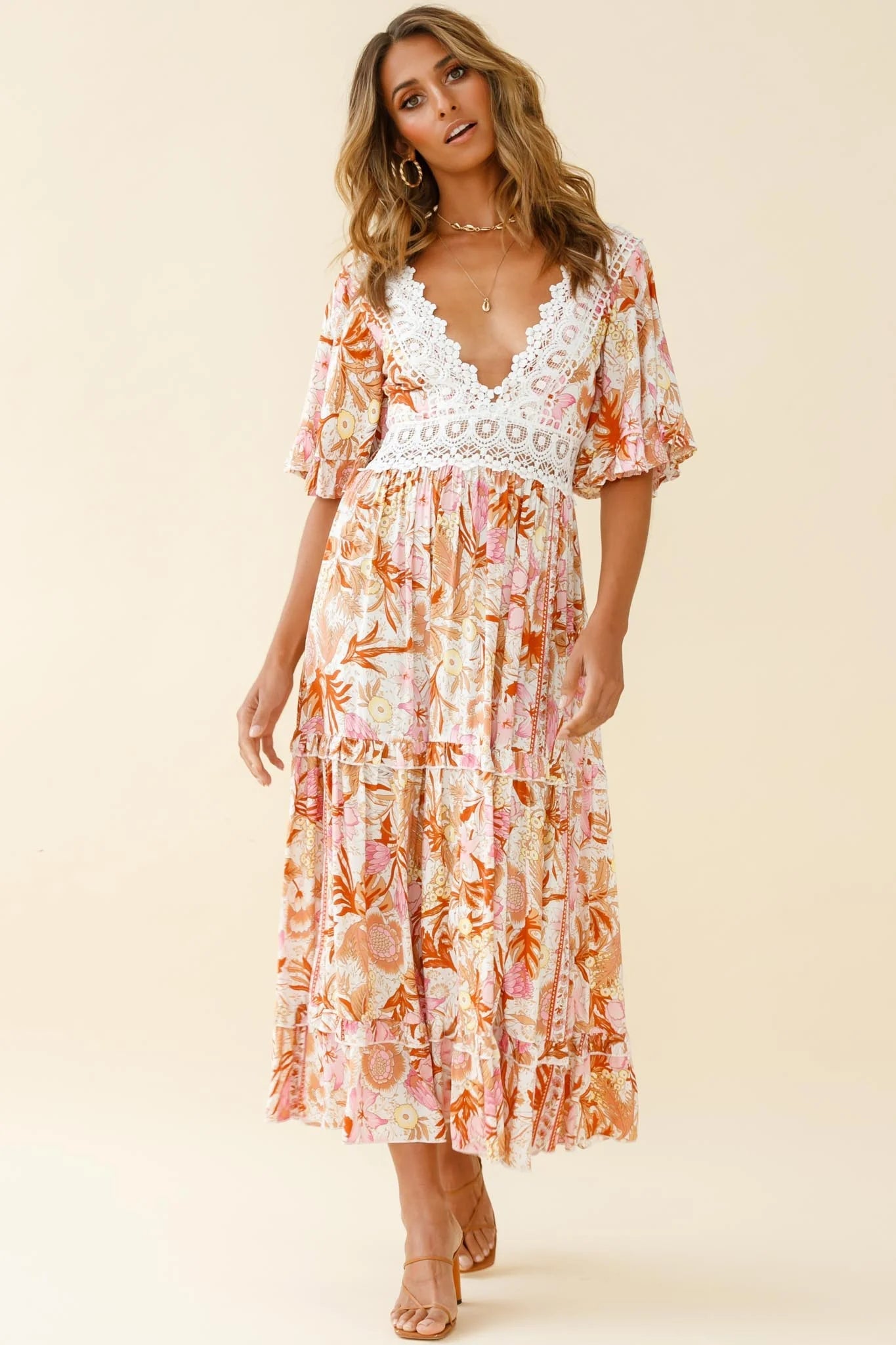 Channel your inner boho babe in our pretty Indio dress. Perfect for lunch with your ladies or a day exploring the vintage flea market, it features a deep V-neckline and back and gorgeous crochet inserts. Pair it with silver and turquoise gems and leather sandals for maximum boho vibes.