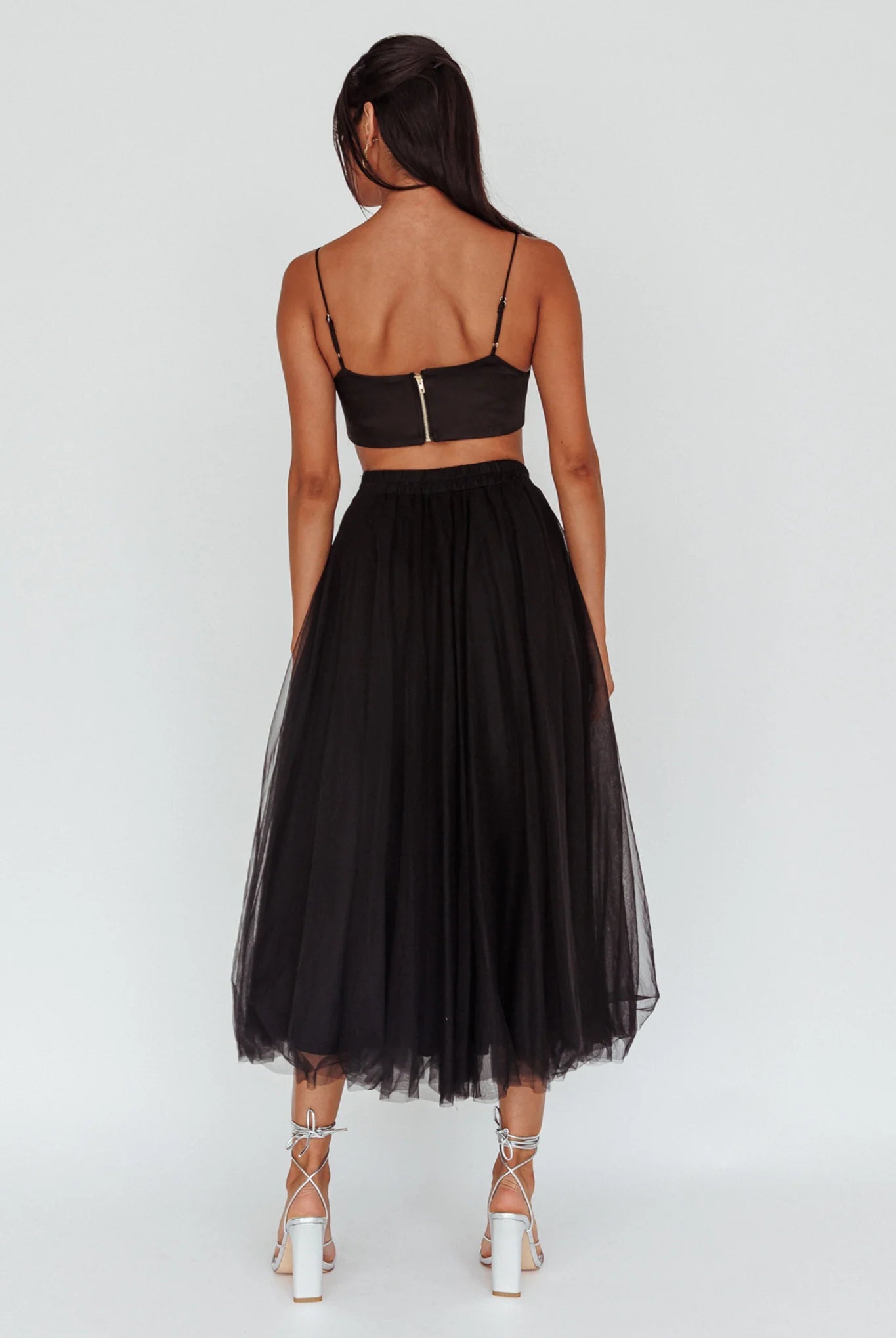 You are one classy lady in our elegant Jasmine midi skirt. Fully lined, it features a romantic mesh fabric throughout, A-line cut and elasticated waist. Perfect for brunching in Beverly Hills teamed with a crop top and mules.