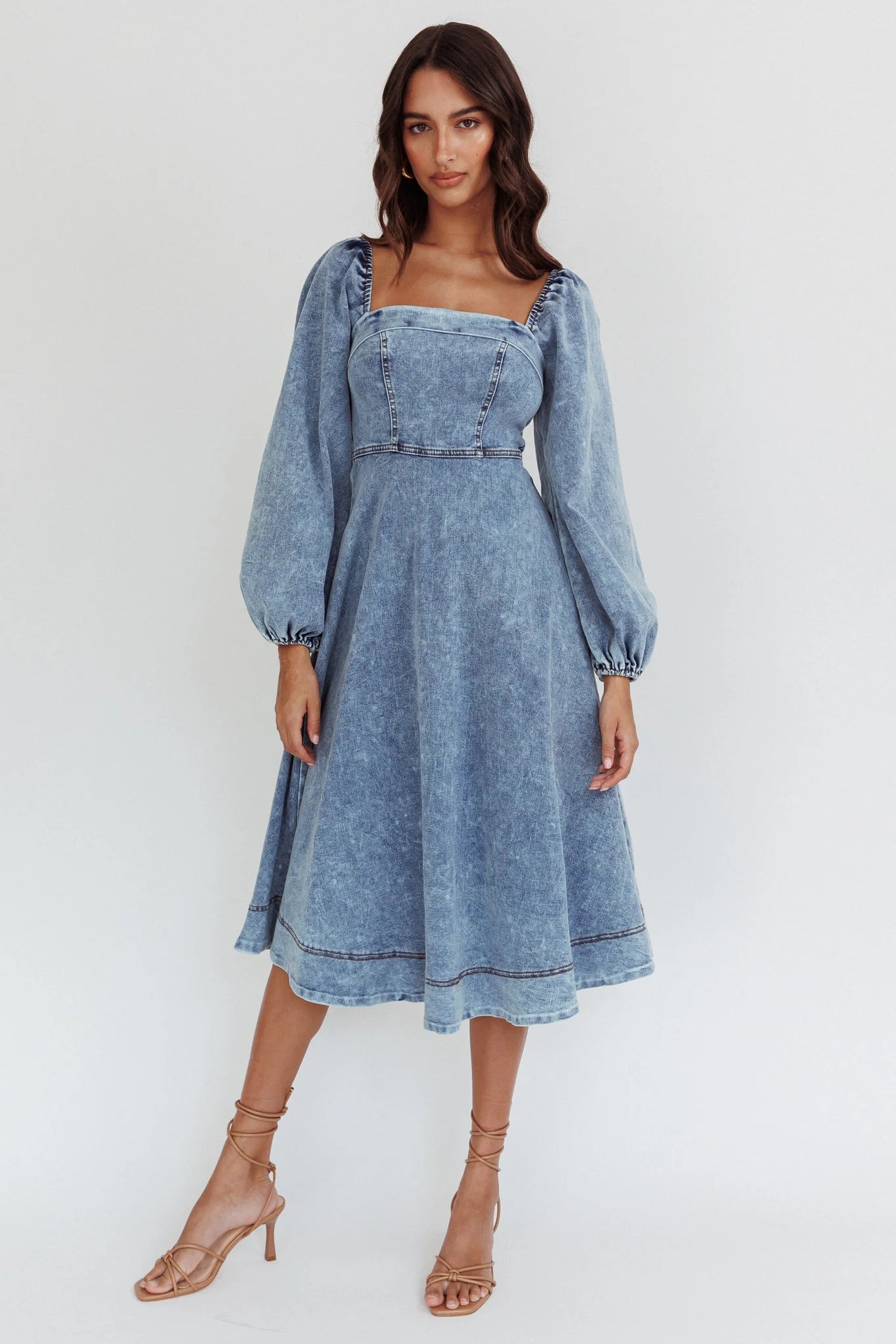 Hey there, cutie! You'll feel like a princess in our pretty Jeanie midi dress. Featuring a classic A-line cut and long sleeves, it's perfect for weekend brunch with your girls teamed with wedges and a tote for a stylish look we are loving.