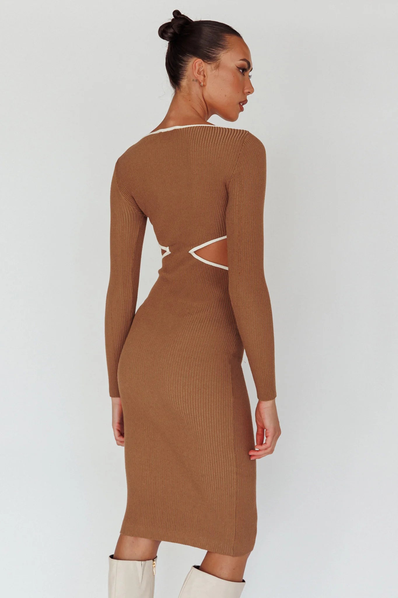 Steal the spotlight in our super cute Jovie midi dress. Featuring hot keyhole details and a soft, ribbed knit fabric. It's perfect for dinner dates with your besties teamed with boots and a statement purse.