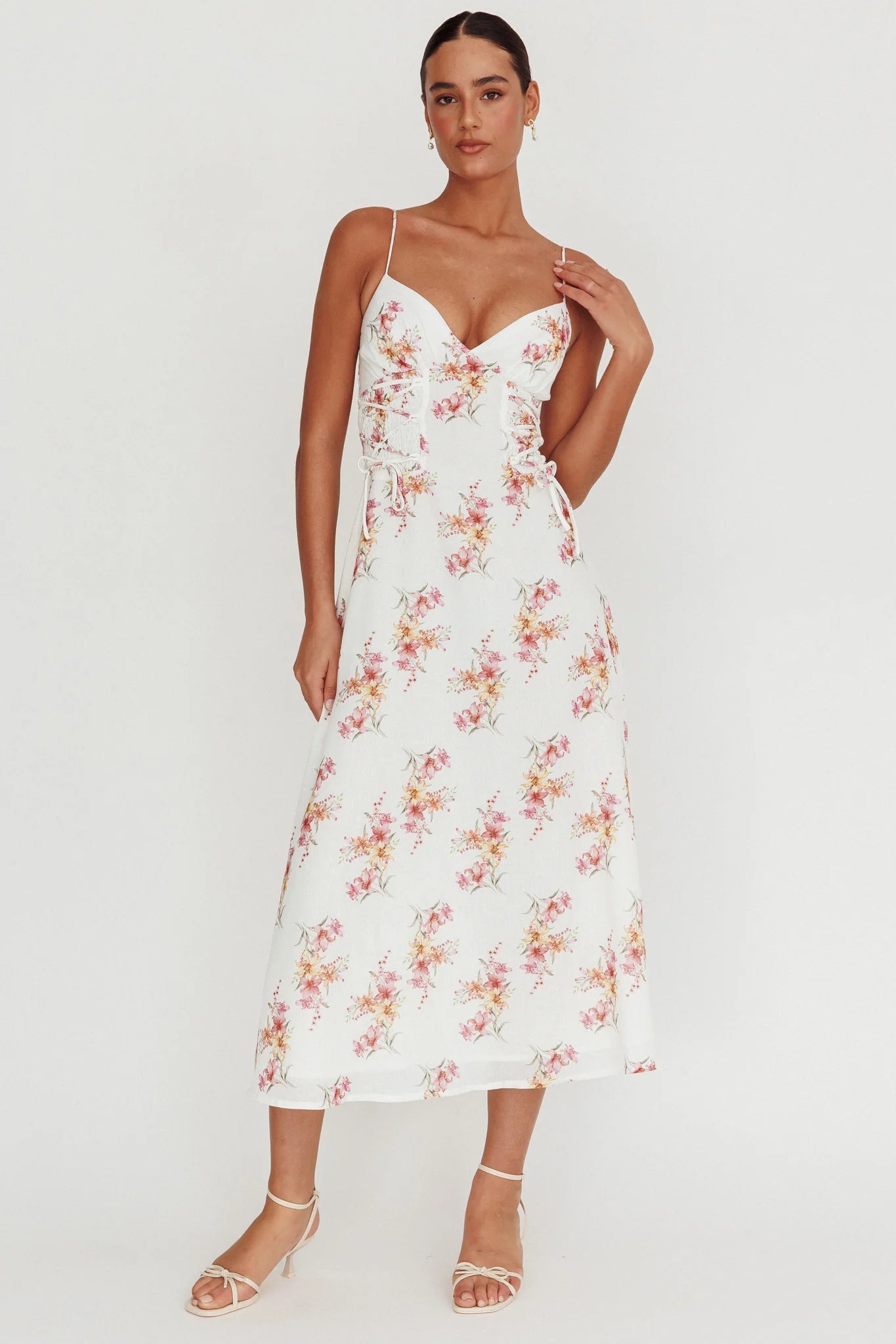 Steal the spotlight in our stunning Kalaya midi dress. It features shirring detail in the waist and lace-up sides and is perfect for a special birthday celebration or date night with your crush. Team it with strappy, nude heels and a tote for a head-turning look.
