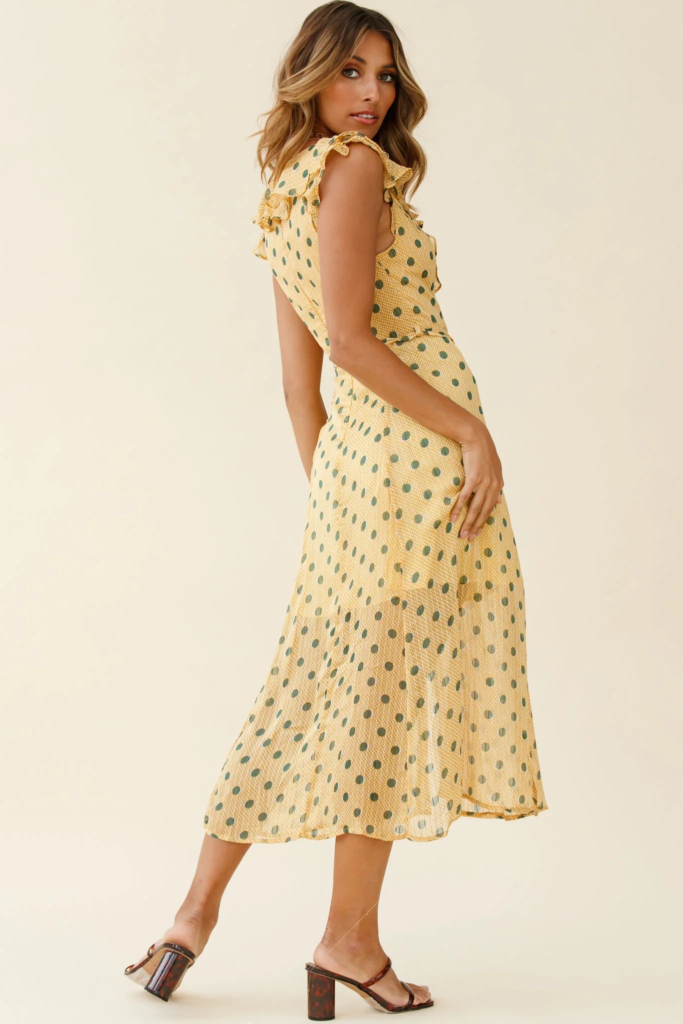 Turn heads in our gorgeous Katrina dress. We are loving its chic midi length and sweet polka dot print. Perfect for your 9-5 or weekend brunching with your besties. Team it with mules and a tote for a classy look that'll get all the attention.