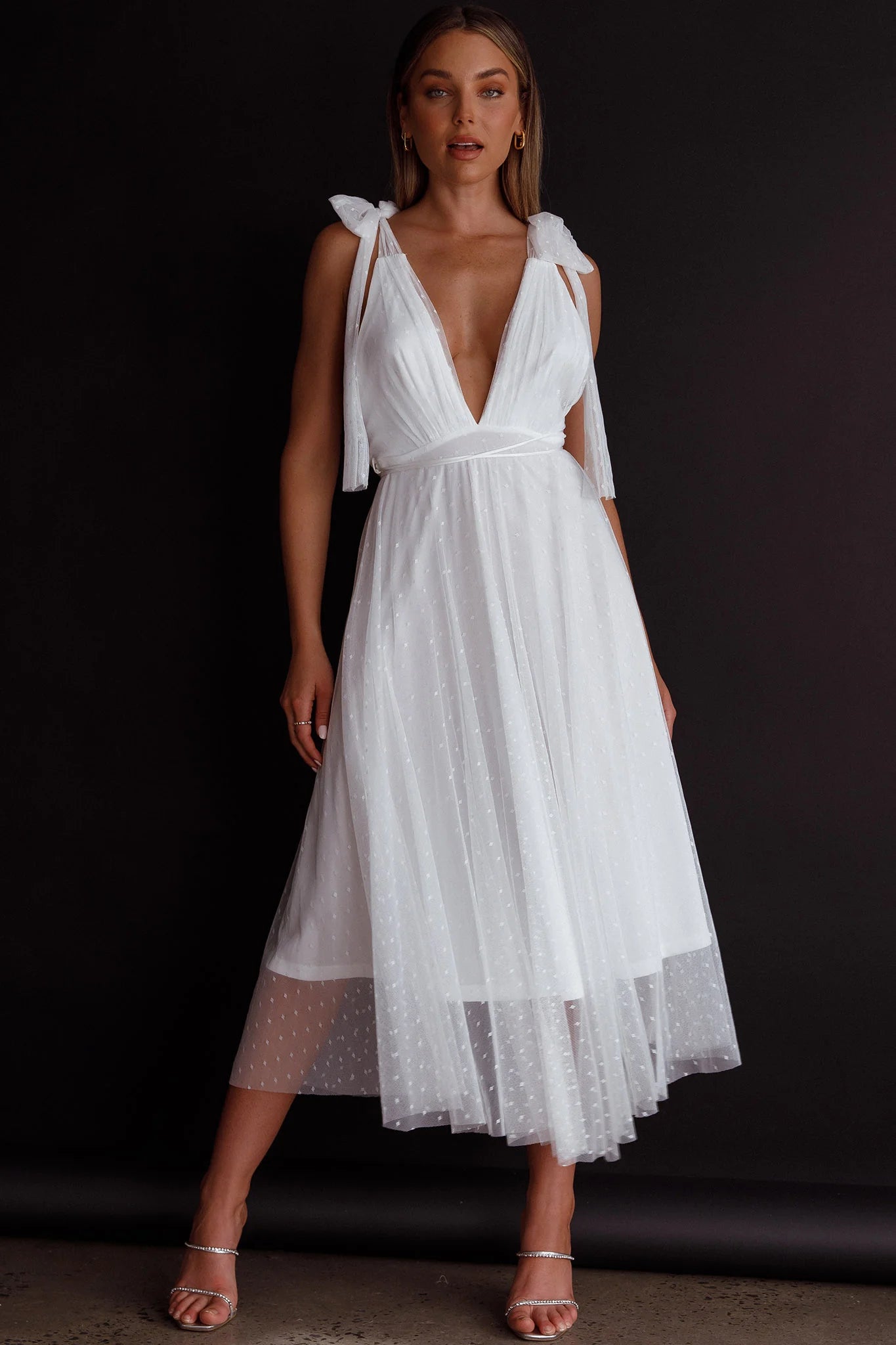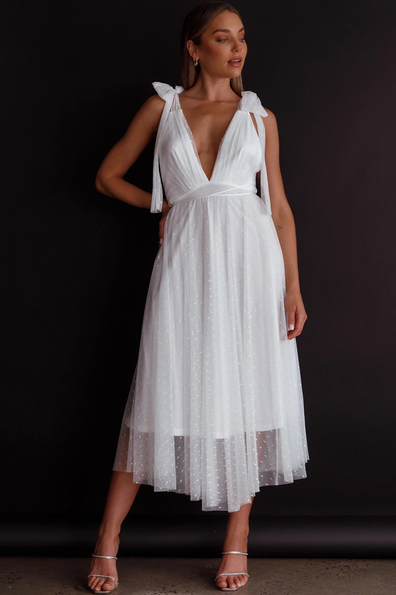 You will be flooded with compliments in our gorgeous Kathryn dress! Obsessed is an understatement when it comes those bow, tied shoulders and stunning hail spot mesh overlay. Perfect for wedding celebrations or a birthday soiree! Team it with white heels and a clutch for an unforgettable look!