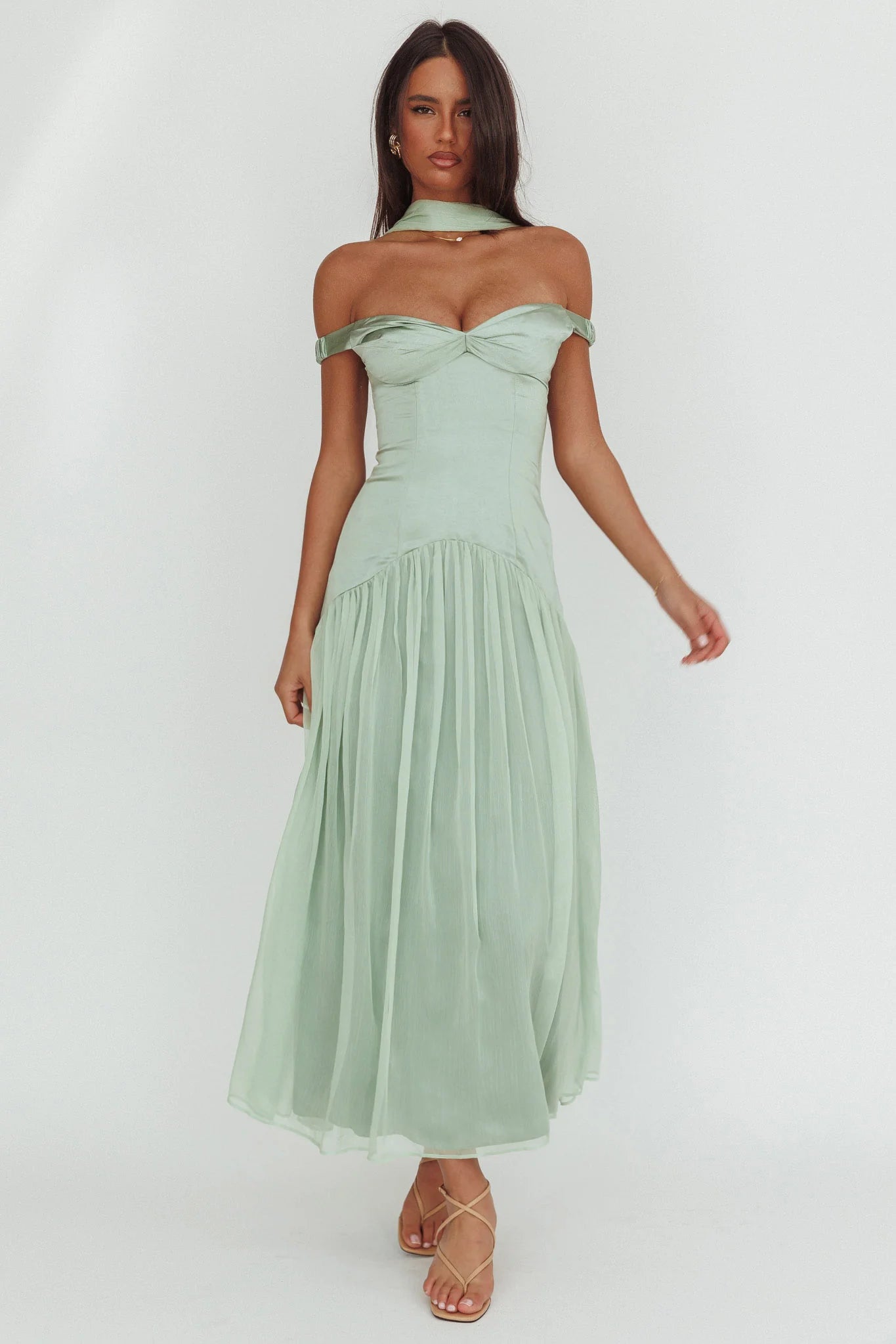 Make an entrance in our stunning Kaycee maxi dress. It features an off-shoulder design and a drop waist. It's perfect for a birthday party or special event teamed with diamante mules and a clutch for an unforgettable look.