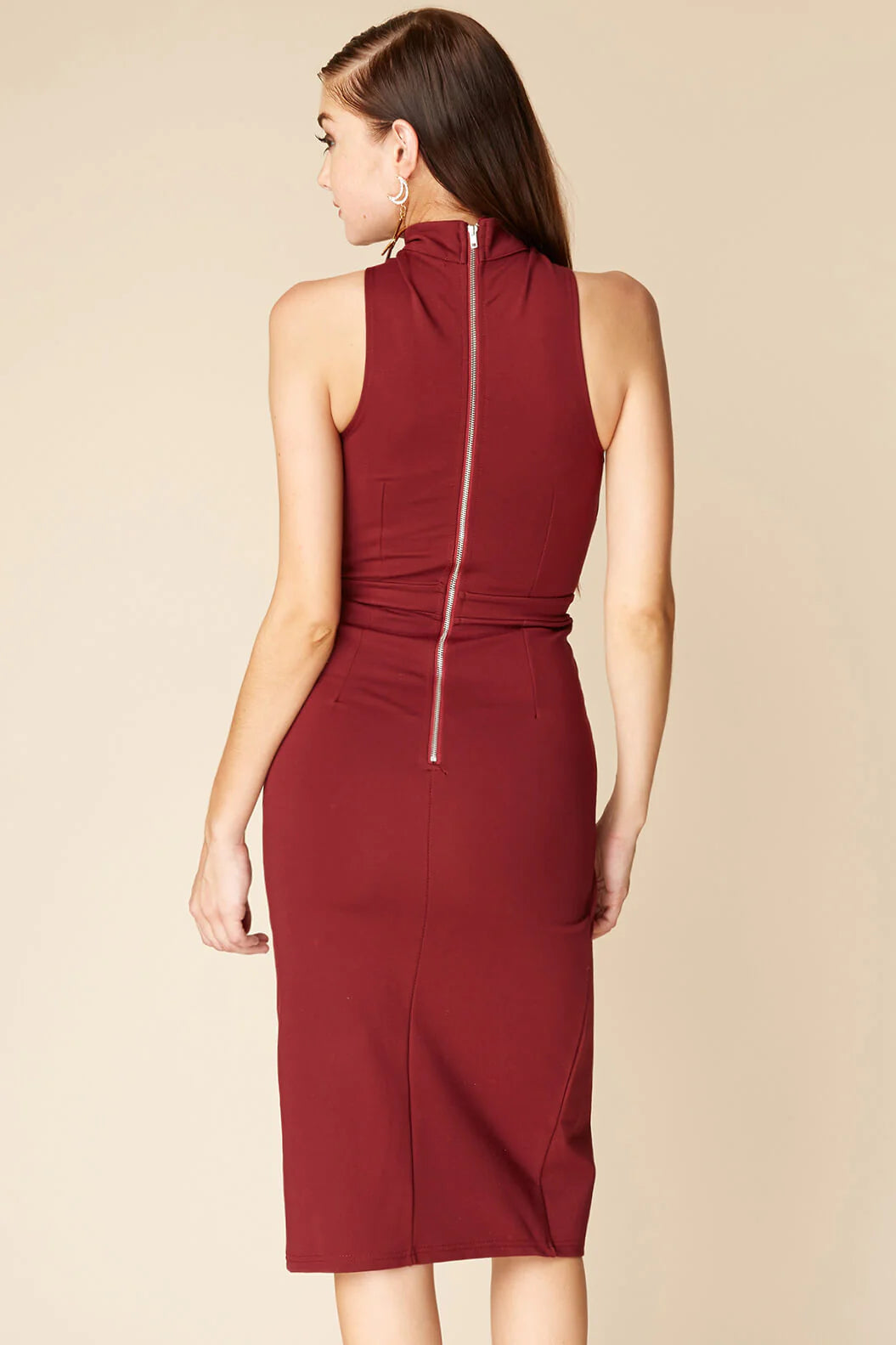 Berry Sweet! You'll own the holidays in this cross top halter with tasteful cutouts. Wear with classy gold jewelry and sparkling high heels.