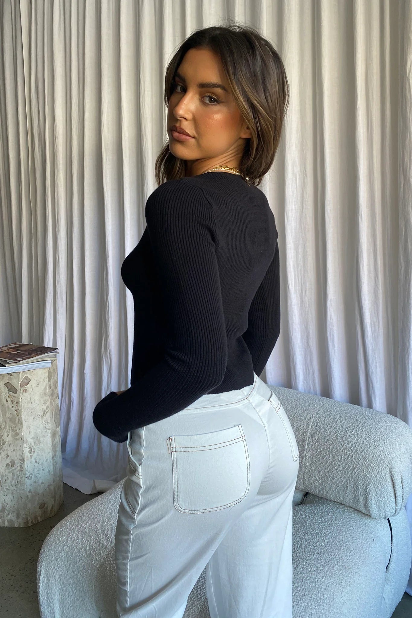 You'll turn heads in our hot Kezia top. Featuring a cut-out front and ribbed knit. It's perfect for dinner dates with your besties teamed with white pants for a fresh look we are loving.