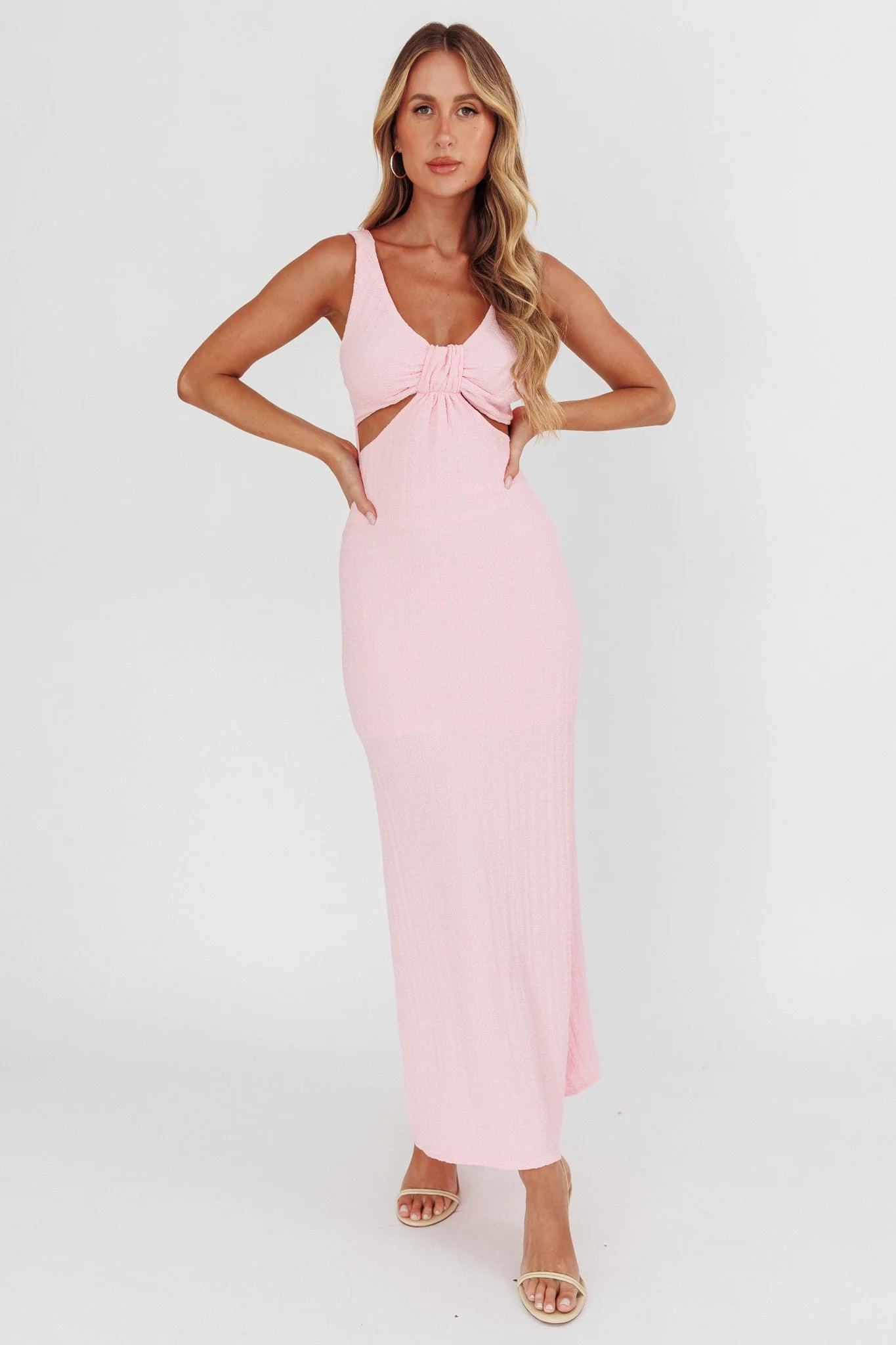 Make an entrance in our chic Kharissa maxi dress. It features a textured, stretch fabric and cut-out detail in the bodice. It's perfect for a flirty date night or cocktails with your girls. Team it with pointed-toe kitten heels and a hobo bag for an on-trend look we are loving.