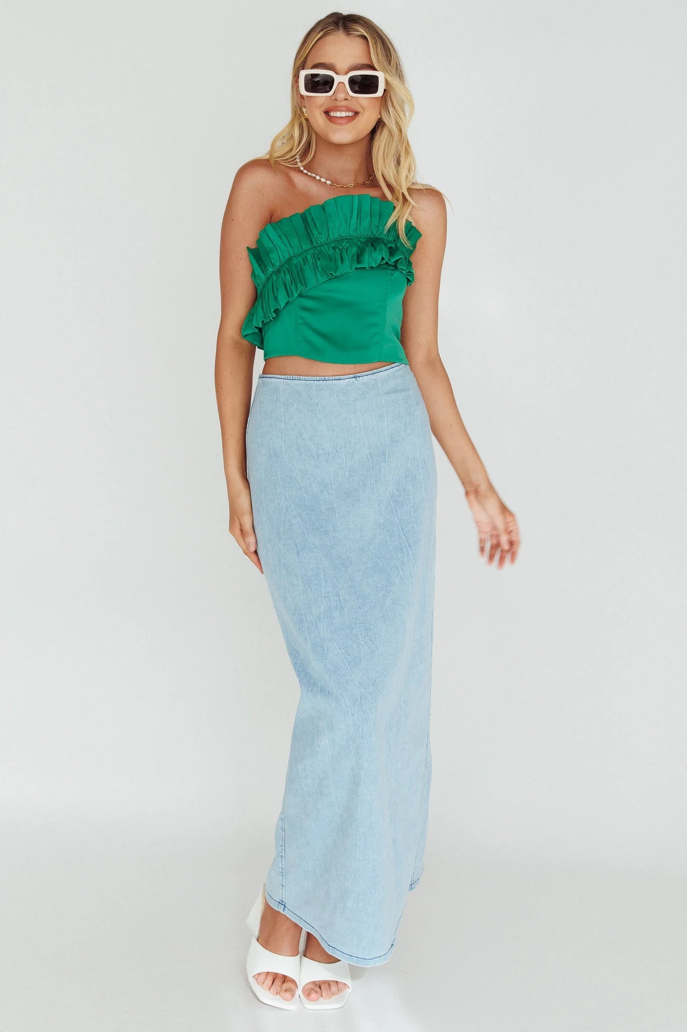 You'll be the belle of the ball in our super cute La Belle crop top. Featuring a pretty, frill-trimmed neckline, it's perfect for a girls' cocktail night teamed with a sequin mini skirt and heels.