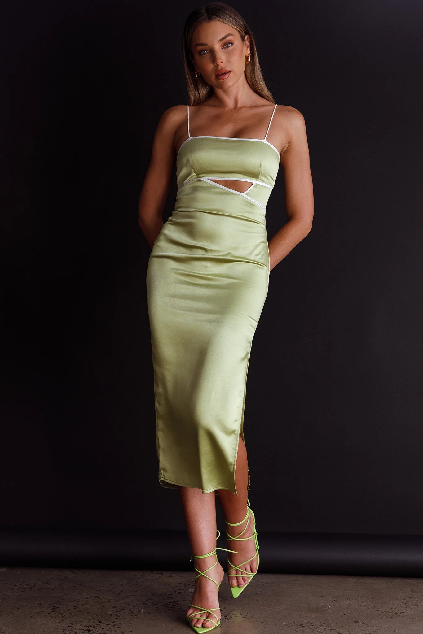 Our Laia midi dress is giving us Y2K energy and we are here. for. it! Featuring a square neckline and cut-out detail in the bodice, we are loving the white trim! Perfect for a date night or birthday bash. Team it with perspex mules and a clutch for an on-trend look.