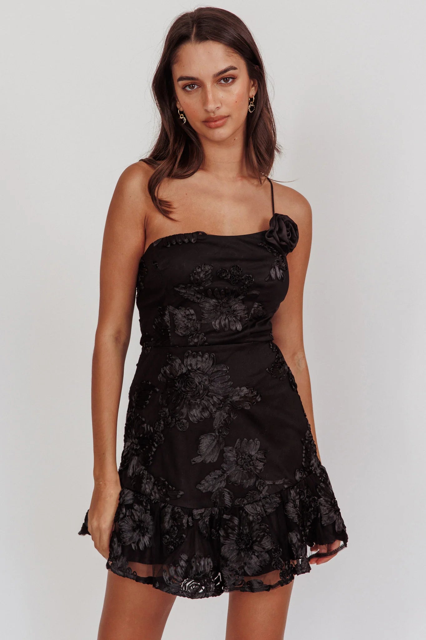 Make a statement in our stunning Lilah dress. We are obsessed with that gorgeous embellished fabric throughout and on-trend one-shoulder style. Perfect for a wedding or special occasion teamed with black, strappy heels and a clutch.