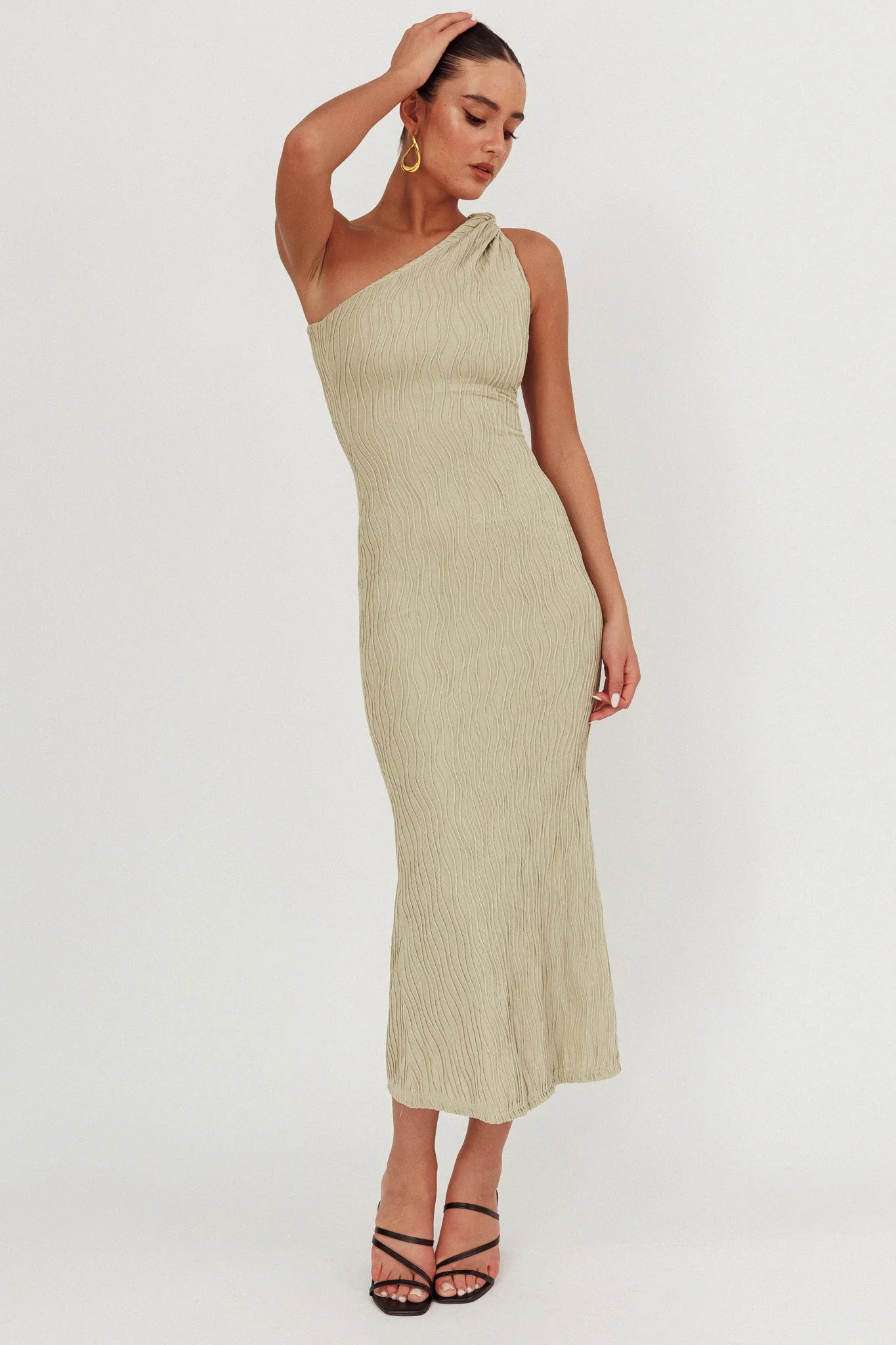 Stop the show in our gorgeous Lingering Love midi dress. We are head over heels for its pretty, textured fabric and one-shoulder design! Perfect for a bridal shower or a special celebration teamed with a clutch and kitten heels for a stunning look.