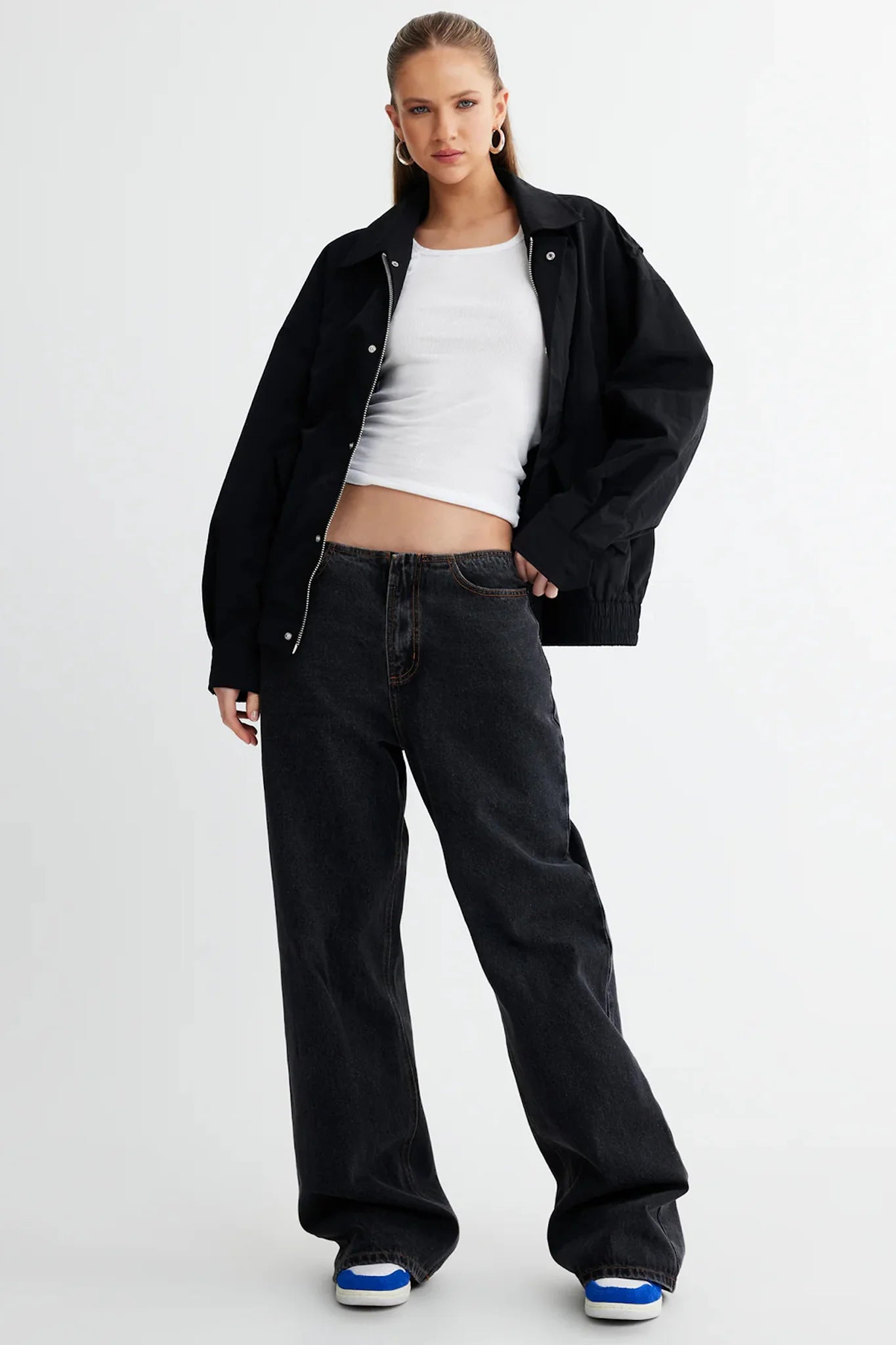 We are obsessed with the Kenny jacket by LIONESS. Featuring a zipper front and elasticated hem, it's perfect for everyday wear. It looks amazing with wide-leg jeans and pointed-toe boots for a night out with your girls!