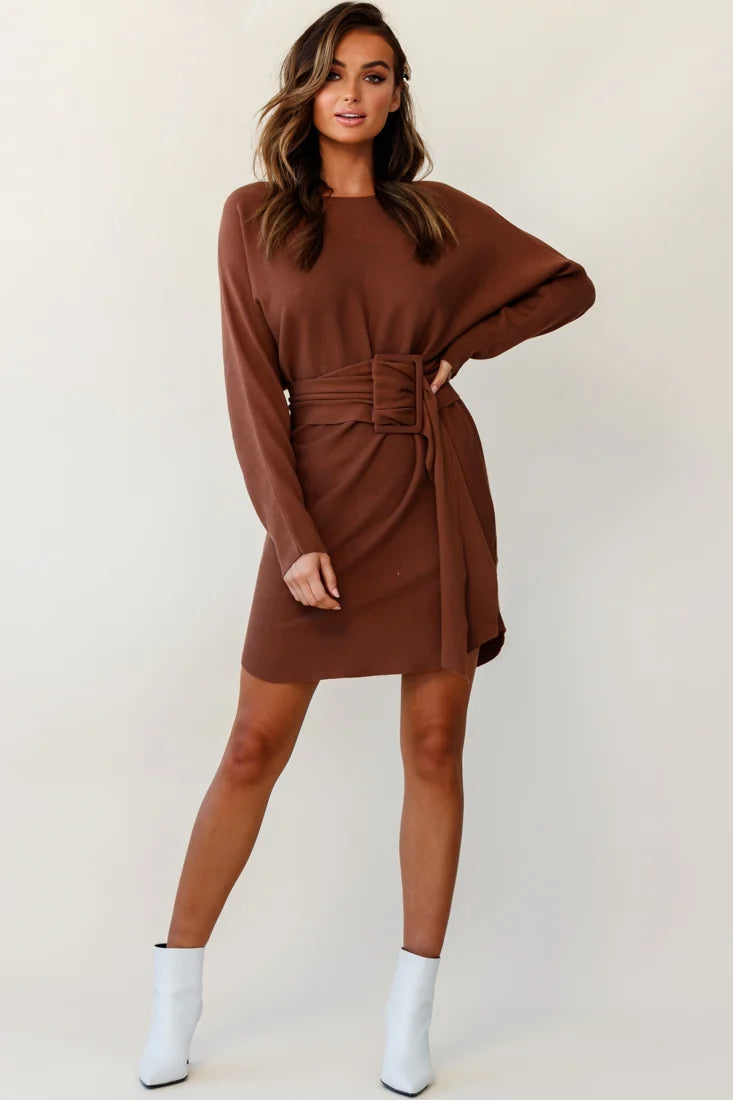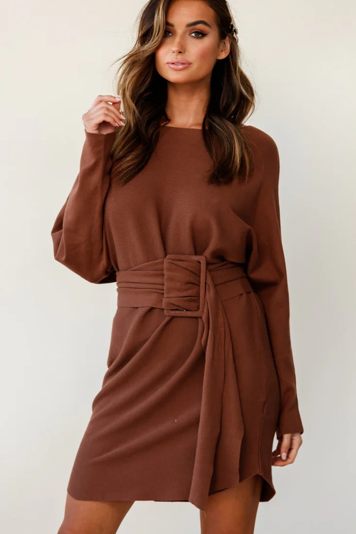 Keep it classy in our Lorelei dress. Featuring a soft knit fabric throughout, long sleeves, loose cut with a wide, removable belt to cinch you in at the waist. Take it from day to night with heels and a coat.