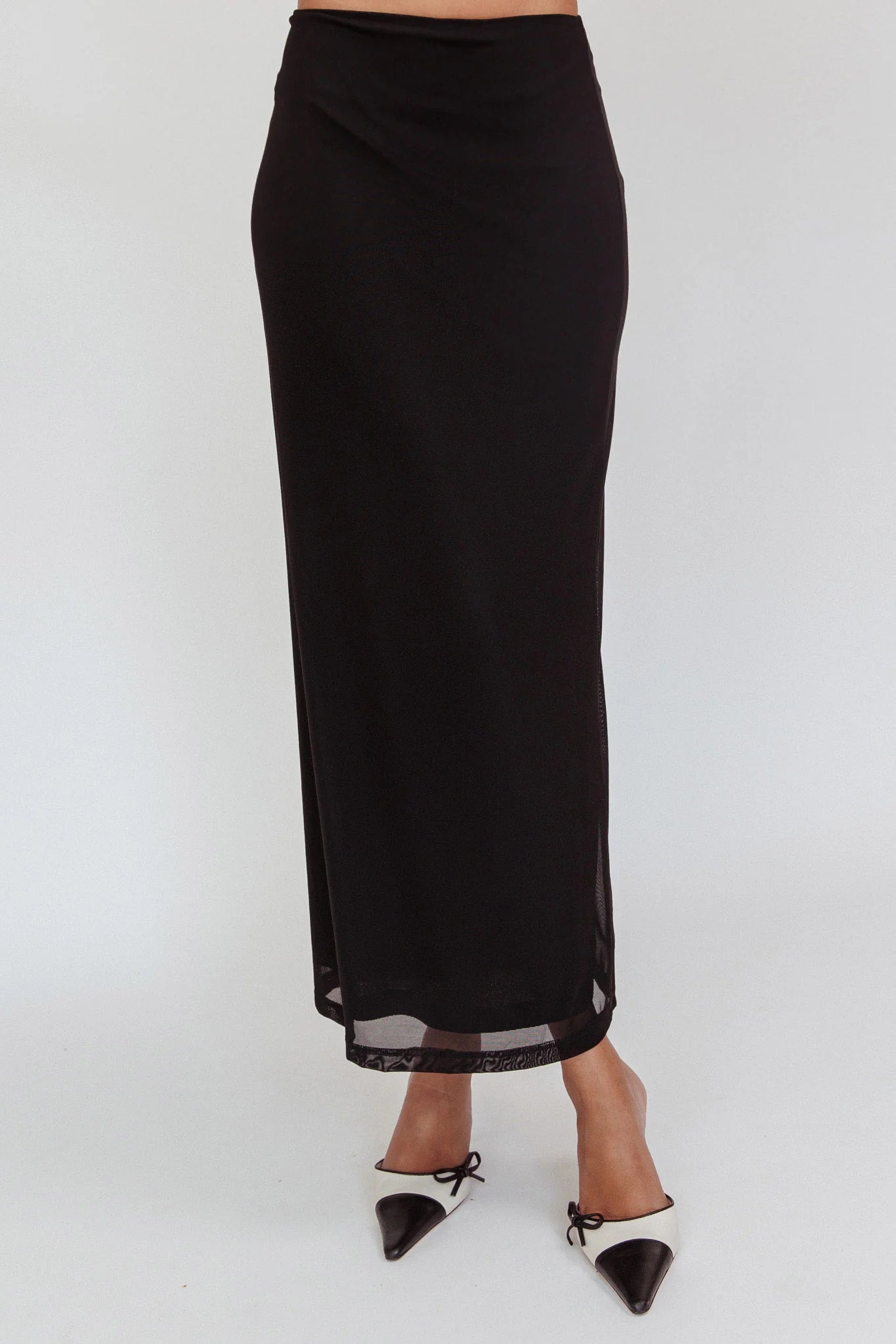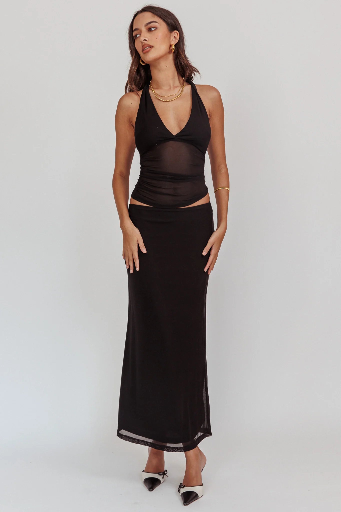 You'll leave them speechless in our hot Lorely skirt. Featuring a mesh overlay and maxi length, it's perfect for a girls' night out! Team it with its matching halter top and black kitten heels and get ready to slay!