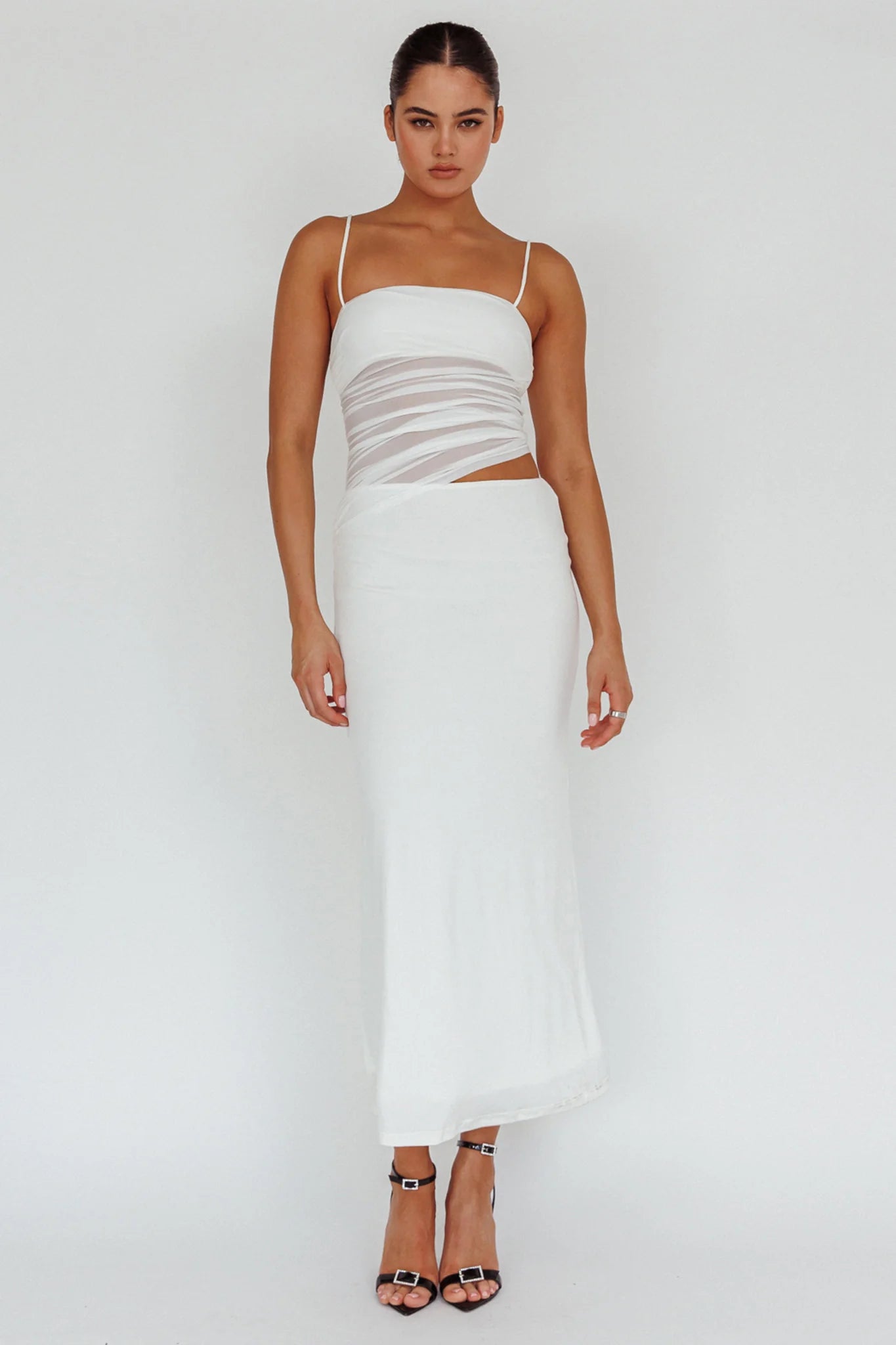 You'll leave them speechless in our hot Lorely midi dress. Featuring a cut-out waist with ruched mesh in the bodice. It's perfect for a girls' night out. Team it with white heels and a purse and get ready to slay!