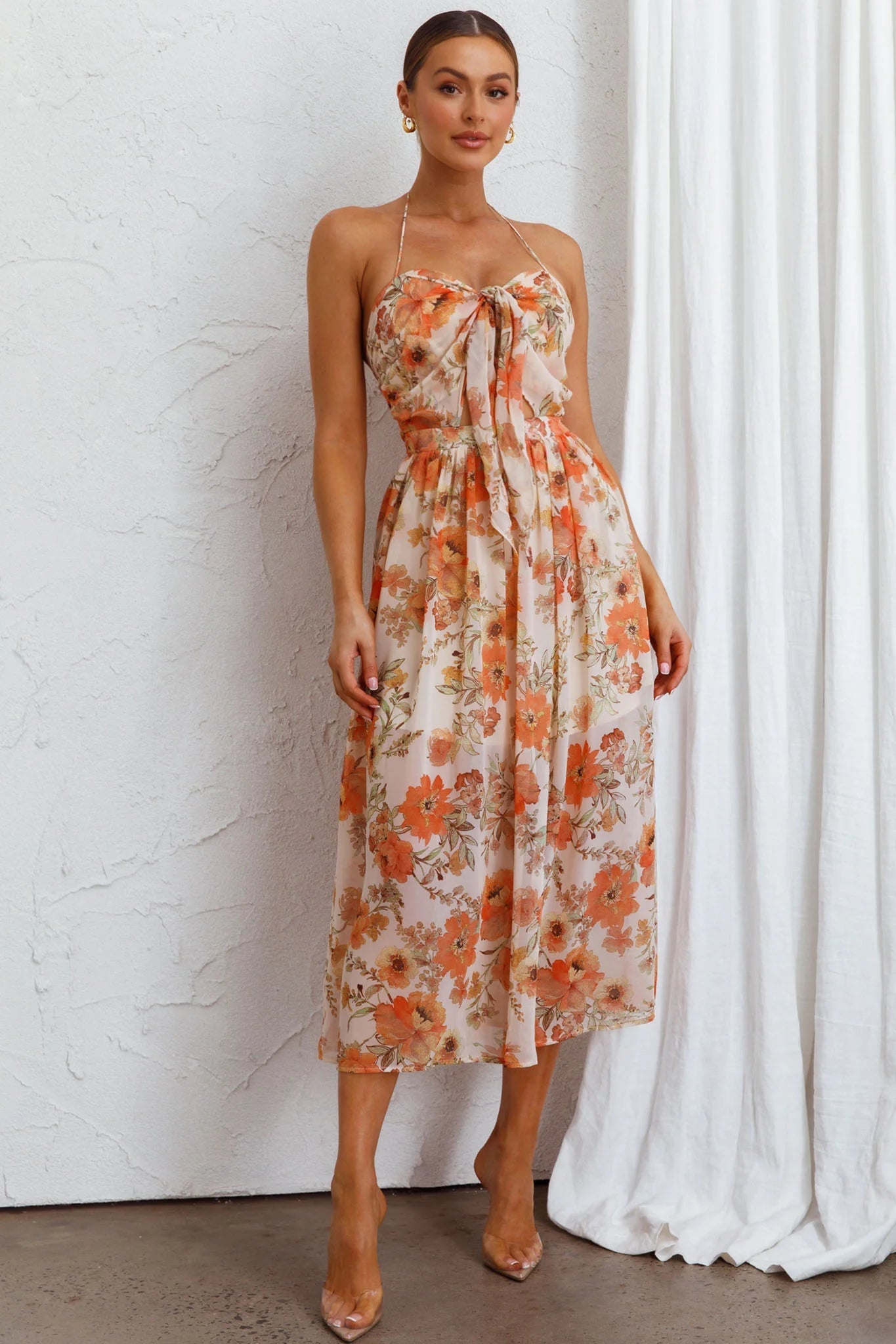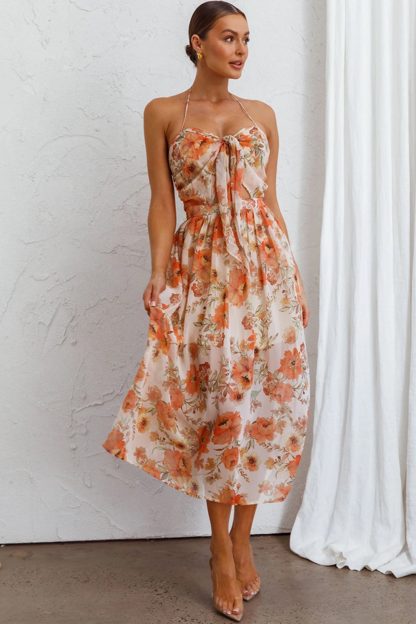 We've fallen head over heels for our dreamy Los Feliz dress. Featuring the prettiest tied bust and halterneck style, you'll be flooded with compliments! Perfect for Sunday brunch with your besties or a garden wedding. Team it with tan mules to complete the look.