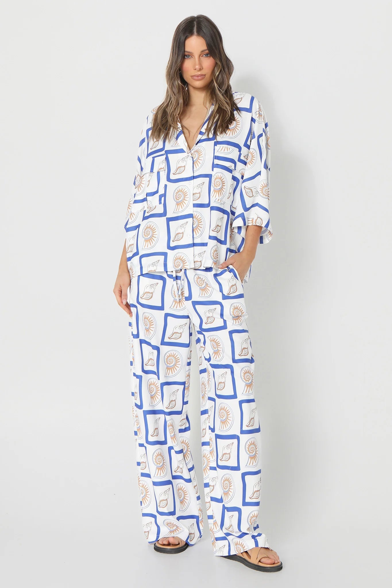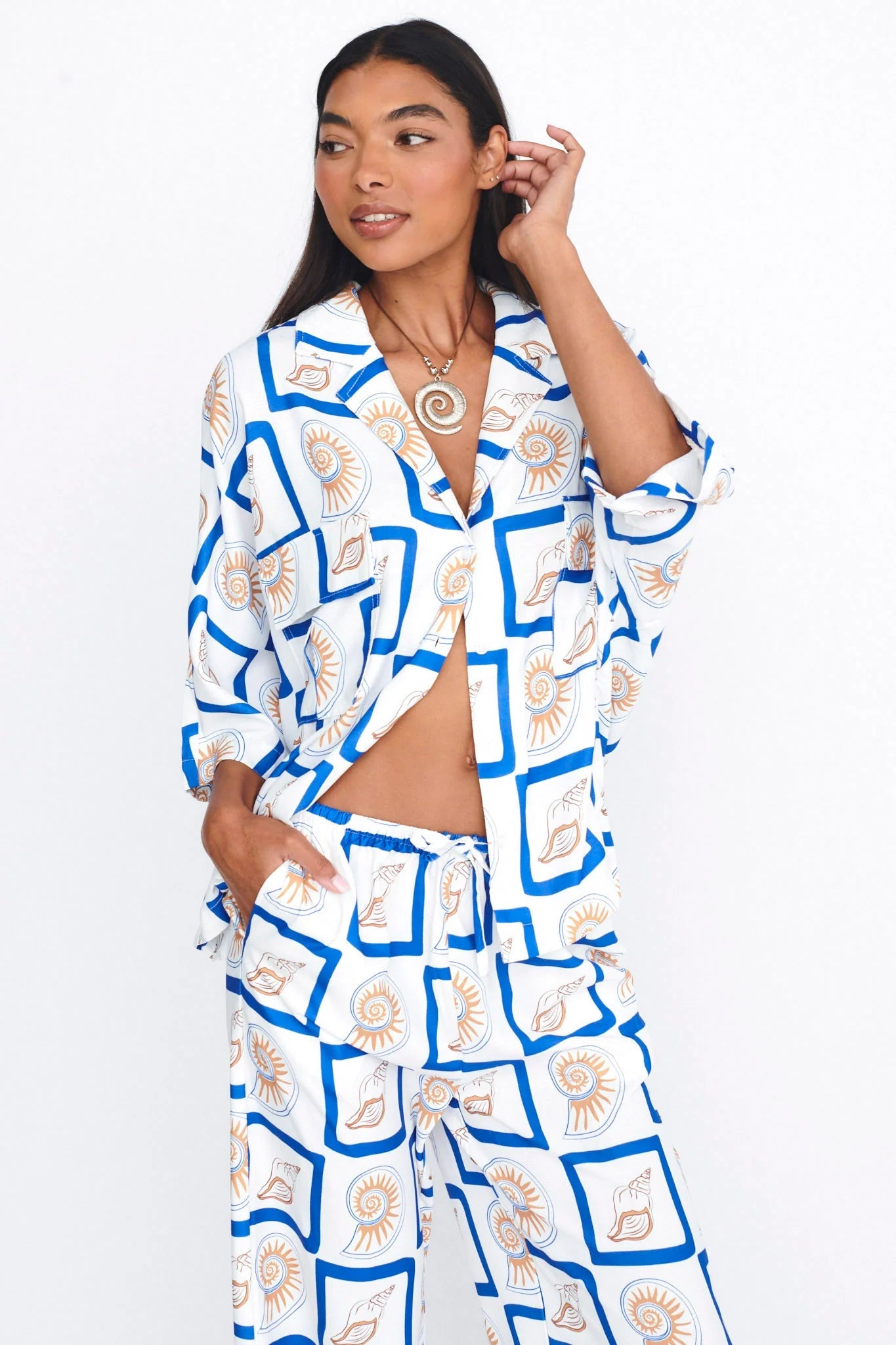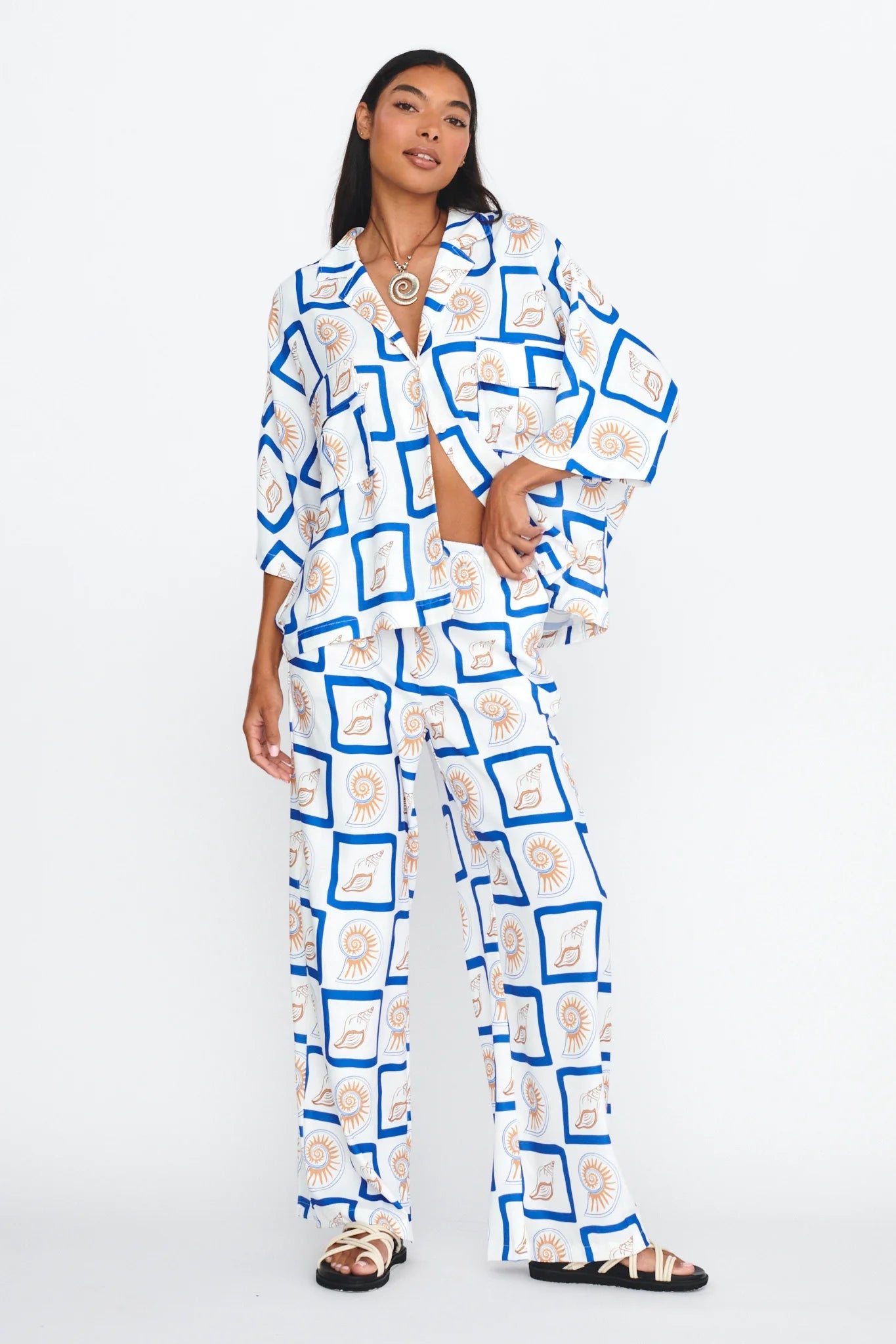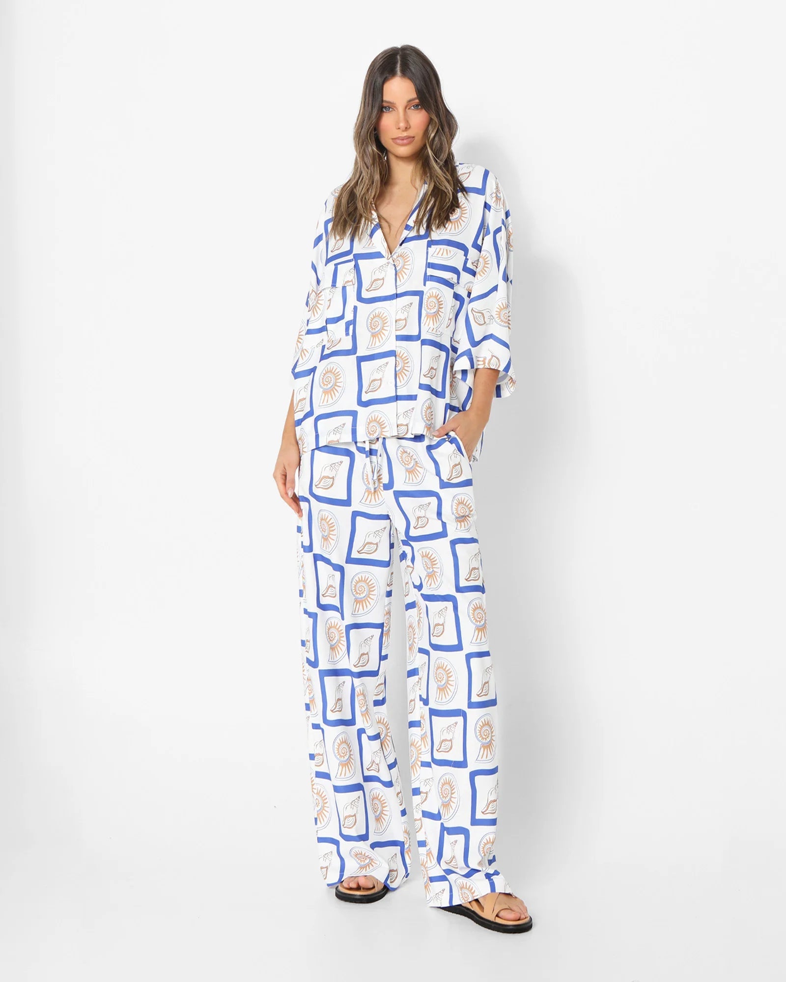 Cruise through your weekend in the chic Sundown shirt by LOST IN LUNAR. Featuring an exclusively designed print and relaxed fit, it's perfect for Saturday coffee dates with your besties. Team it with its matching pants and sandals for a cute-casual look.