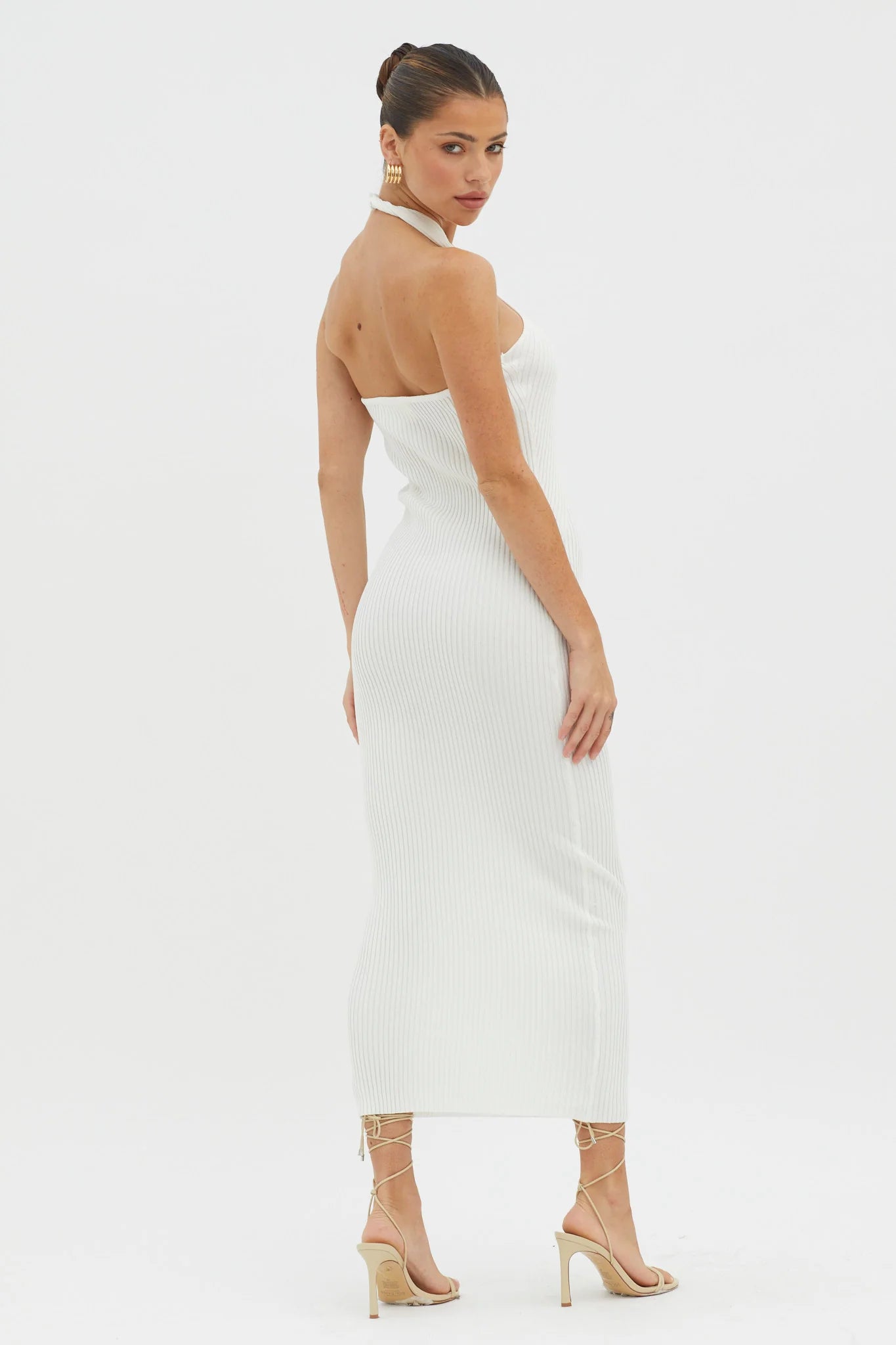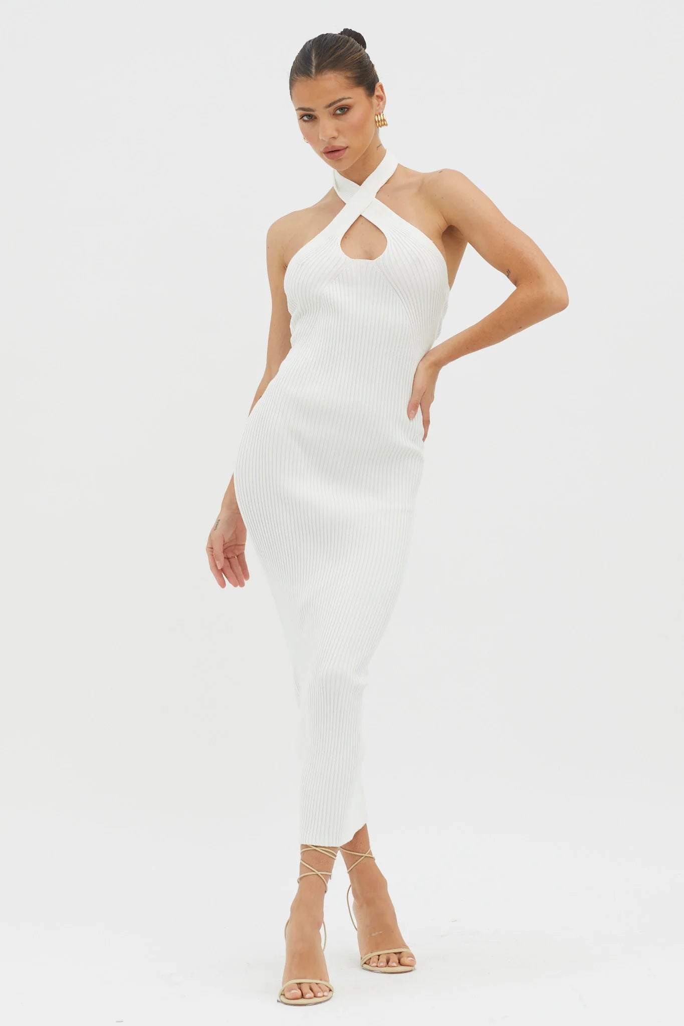 Make an entrance in our gorgeous Lovelock midi dress. It features a ribbed knit fabric and a chic, crossover halter neckline. It's perfect for Friday night cocktails with your girls! Team it with nude heels and a clutch for a showstopping look.