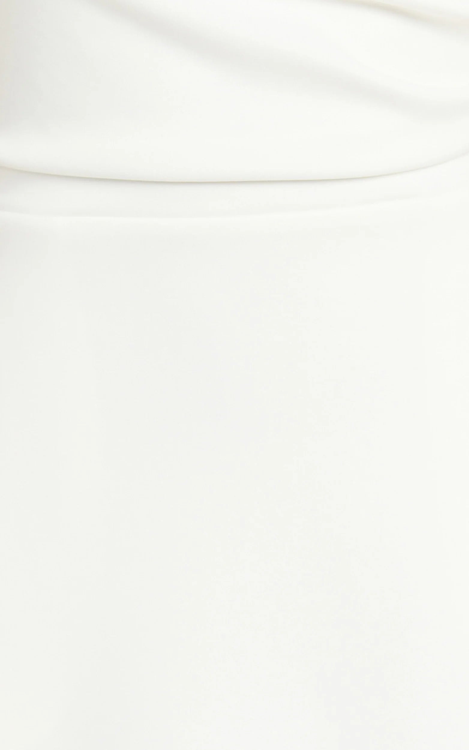 Crafted in a fresh off-white hue, this high-neck A-line silhouette flatters every figure, blending elegance with playful charm. Subtle yet statement-making, the Macy Midi effortlessly captures this season's trend of Everyday Preciousness, adding just the right touch of luxury whether you're enjoying brunch dates or romantic dinners.