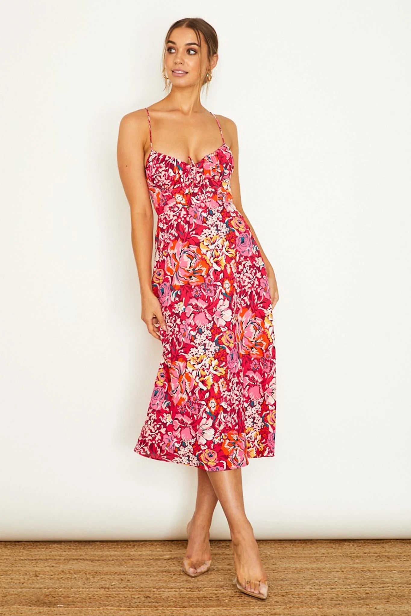 Hey there, pretty lady. Heads will turn when you walk by in our gorgeous Malibu dress. We are obsessed with the gathered bust with string tie detail. Perfect for warm, Summer nights, sipping a cocktail at your fave beachside bar. Team it with mules and a tote to complete the look.