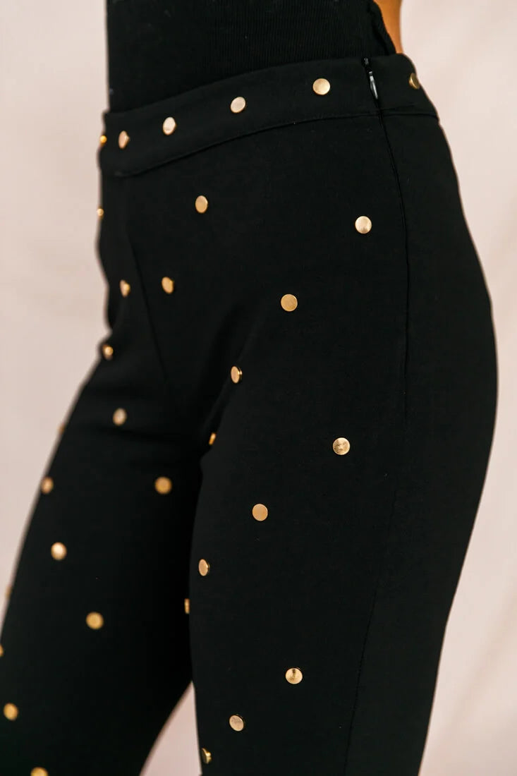 Look city chic in our super hot Manhattan pants. Featuring a side zipper and cute gold buttons covering the front, these pants look so classy teamed with a crisp white button down and patent black pumps for your 9-5, or throw on a sheer black blouse over a bustier and own the night. Pair with gold jewelry and a red lip to take it to the next level.