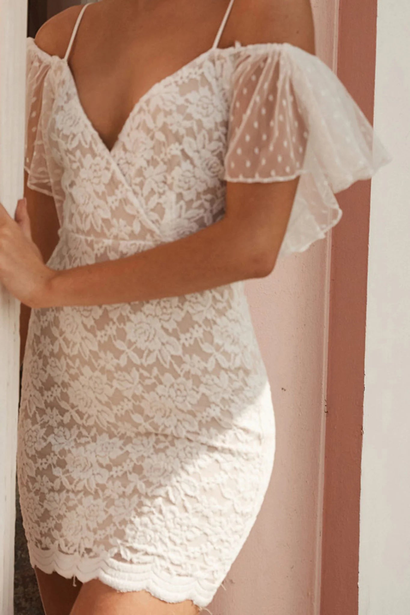 You will steal the show in our gorgeous Maribel mini dress. We are obsessed with its hail spot mesh sleeves and lace-up back feature. Perfect for a bridal shower or special occasion teamed with nude heels and a chic clutch.