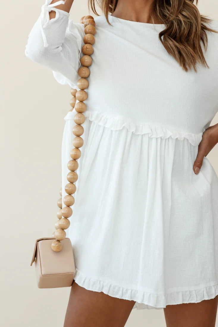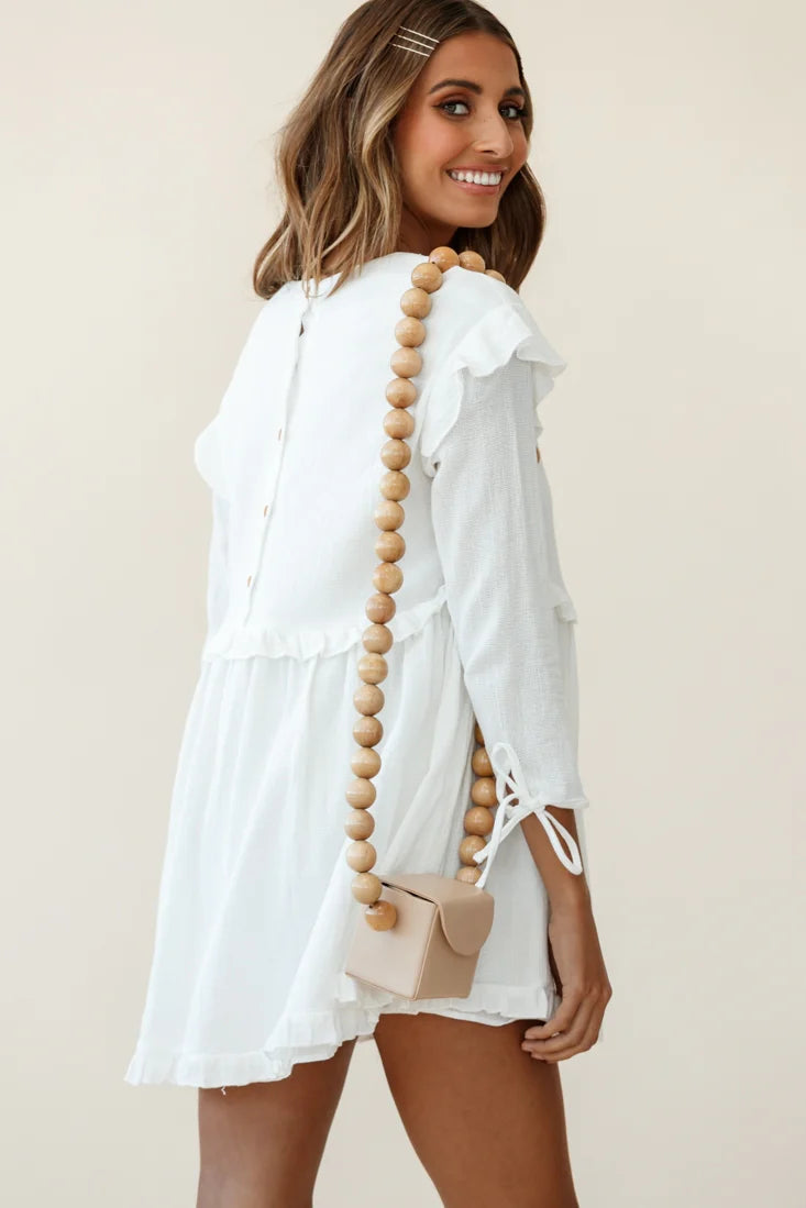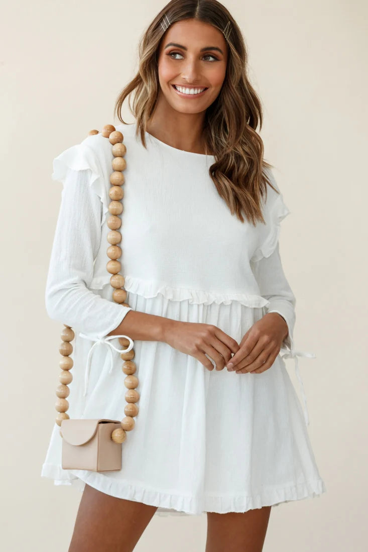 Breeze through your day in our chic Marion shift dress. Featuring bracelet length sleeves, a round neck and frill details. Perfect for the office or a casual lunch date teamed with your favorite mules and a tote.
