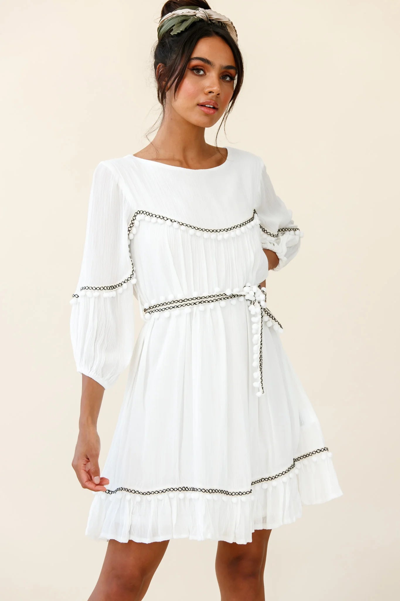 Breeze through your day in our boho-chic Marionette dress. It's super versatile and we are loving the pom-pom trim detail. Perfect for lunch dates with your girls paired with ankle boots and a felt hat or dress it up with tan mules and some gold hoops for a chic look we are loving.