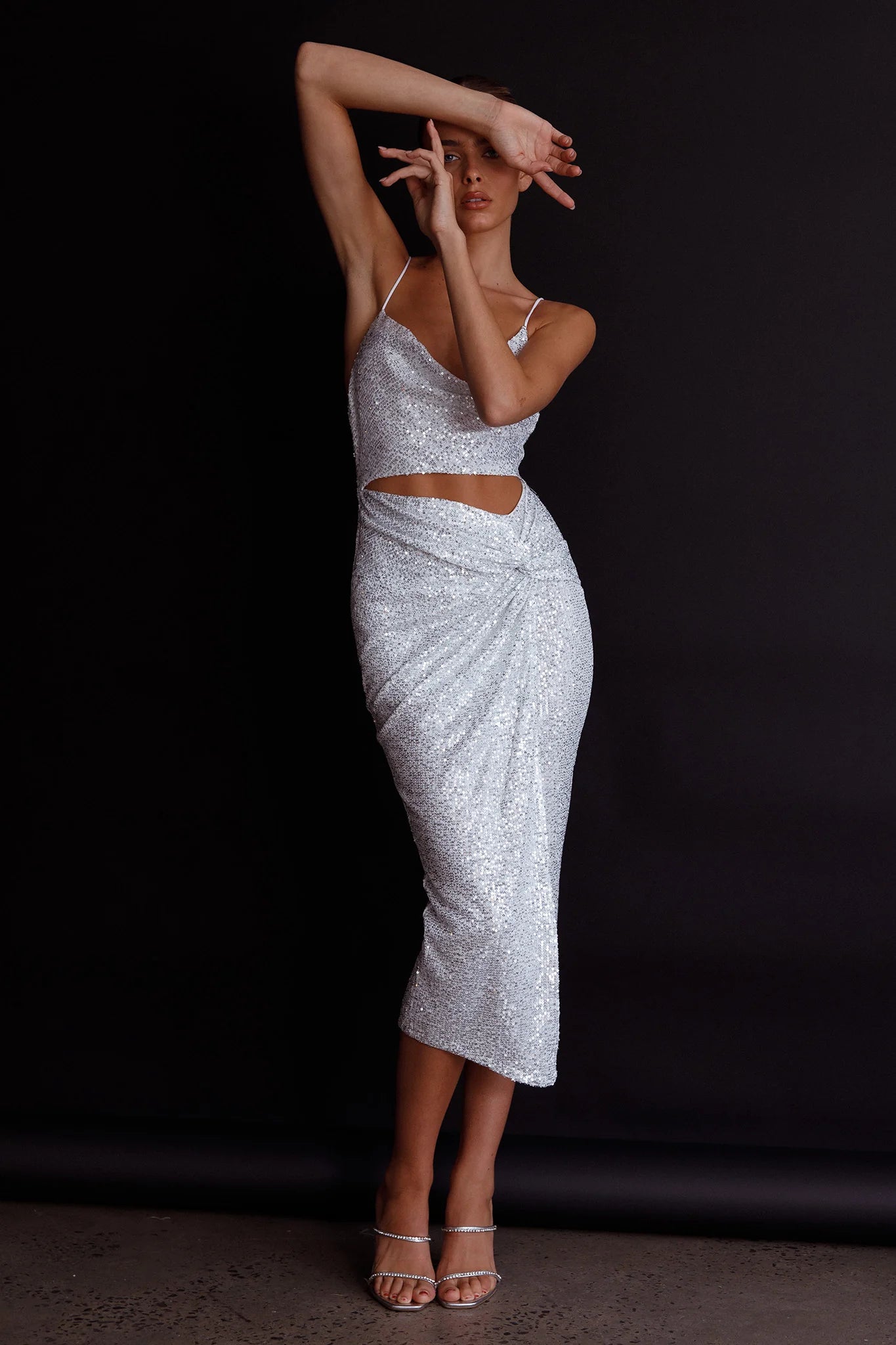 Get ready to hit the dancefloor in our super hot Miami Nights dress. We are loving the cut-out feature in the waist that gives a two-piece illusion. Wear it out for dinner and cocktails with your girls paired with your fave, strappy statement heels and a small purse.