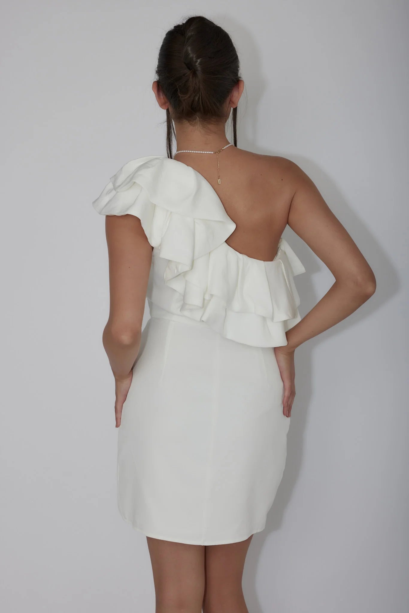 You will sweep them off their feet in our gorgeous Midnight Star mini dress. Featuring a one-shoulder style and ruffle trim. It's perfect for a bridal shower or birthday celebration. Team it with strappy, white heels and a clutch for an unforgettable look.
