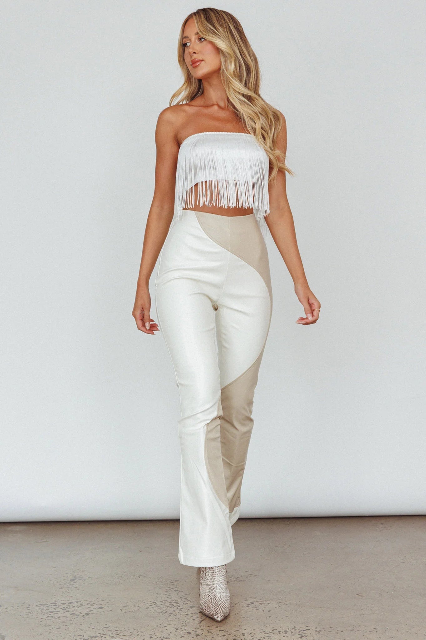 Make a statement in our playful Miss Daisy crop top. Featuring a strapless style and fringing throughout. Perfect for a glam girls' night, it would look amazing teamed with white flares and a tote for a hot look.