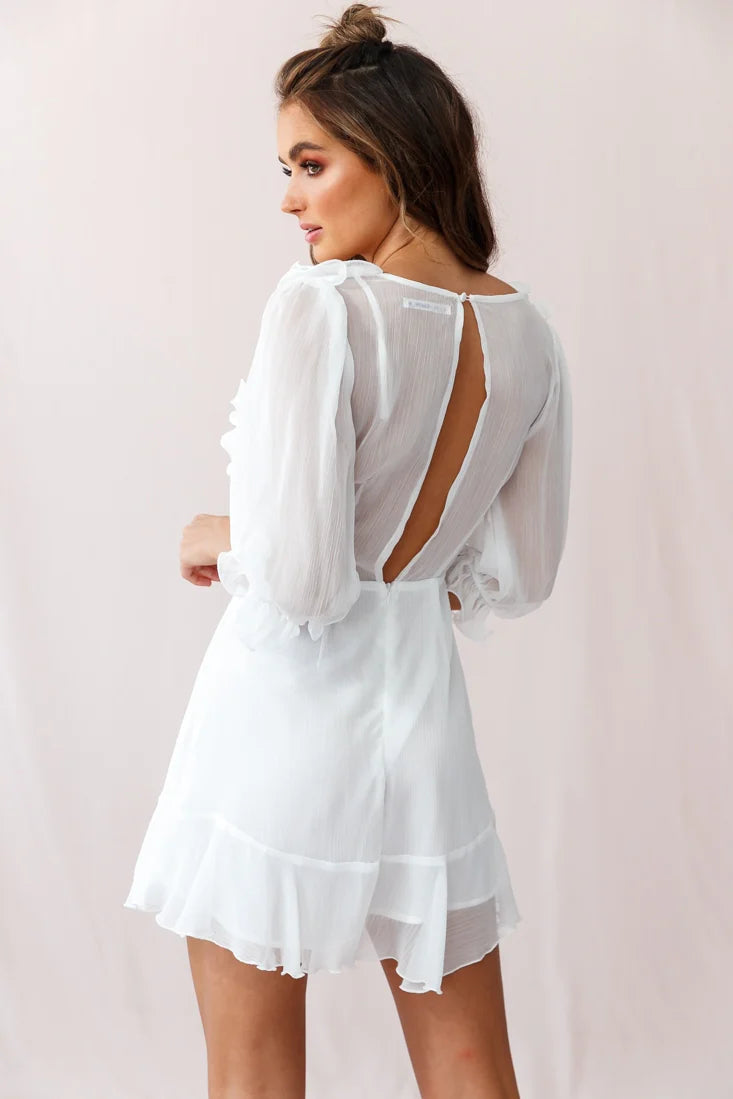 Feel the love in our romantic Misty dress. Perfect for a candlelit dinner with bae or cocktails with your best girls. Partially lined, it features soft chiffon fabric, a pretty ruffle hemline and ruffle detailed bust, a keyhole back and puff sleeves to complete the feminine-chic look. Team it with nude heels and statement gold earrings for a look we are loving.