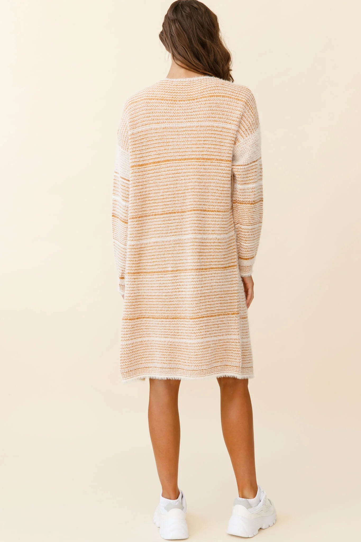 You will look ultra chic in our Moon Shine cardigan. Perfect for throwing on over your fave boyfriend jeans and a turtle neck. We are loving that fuzzy knit fabric and who doesn't love a stripe pattern. Wear it to work or out for coffee dates with your besties.