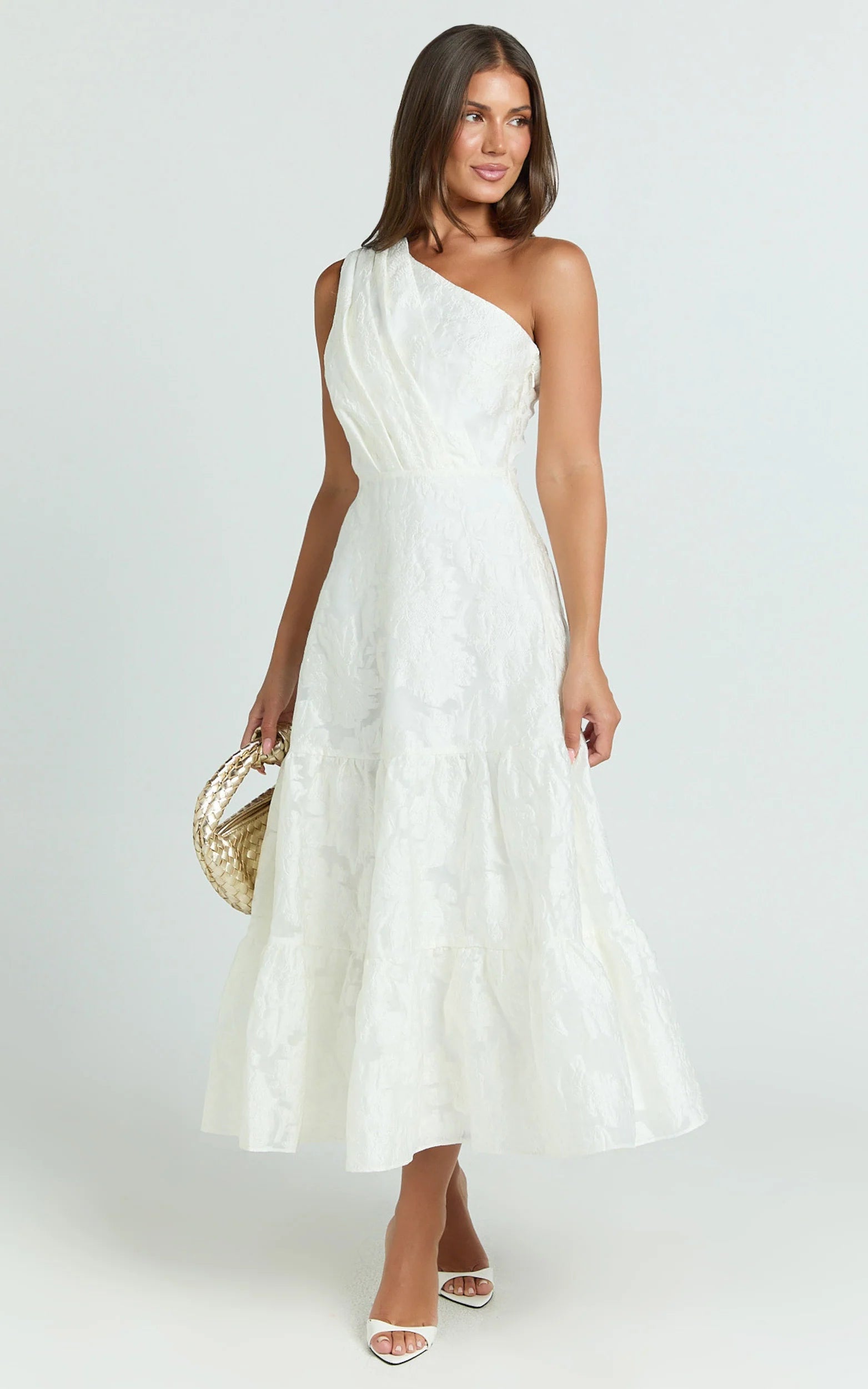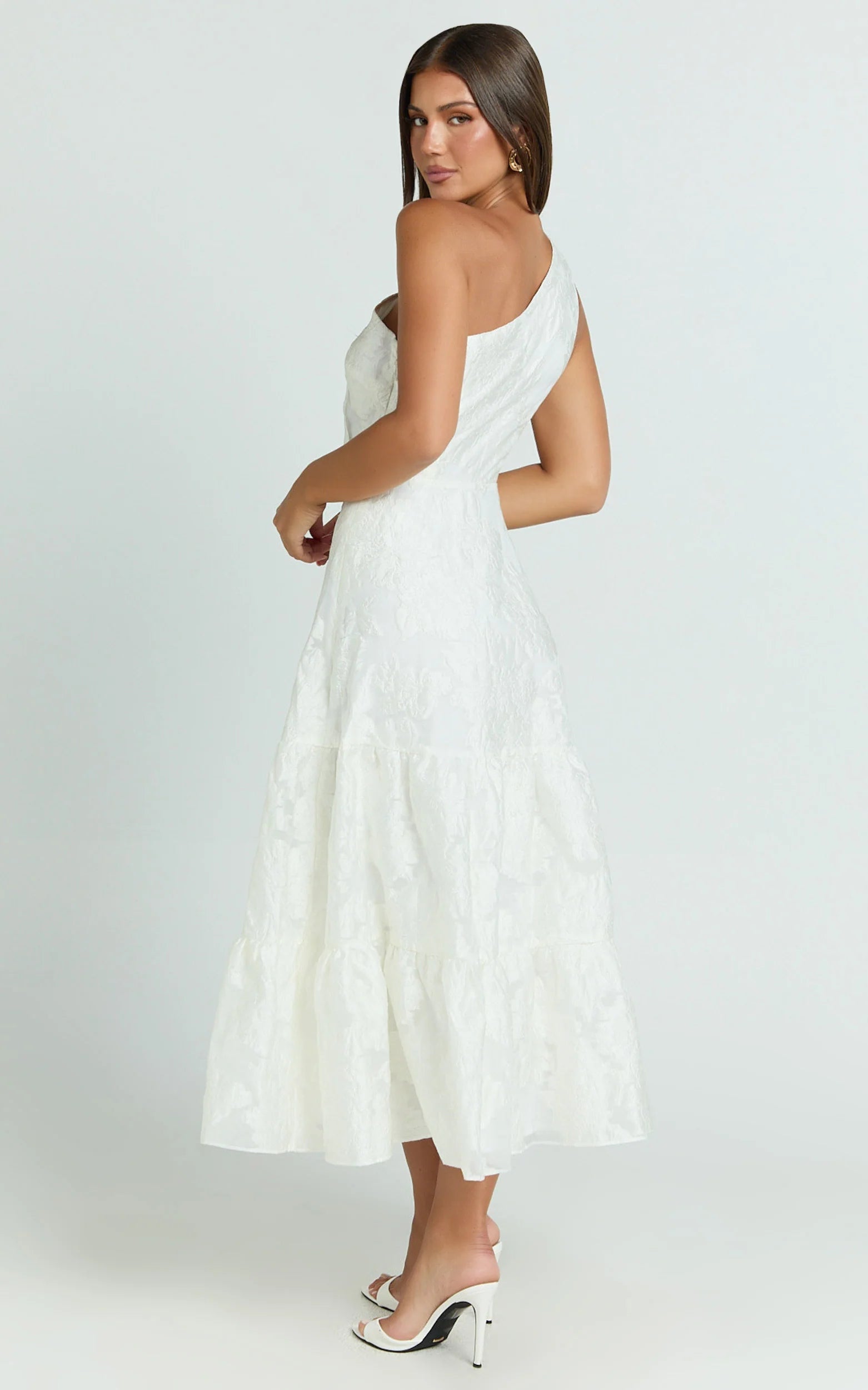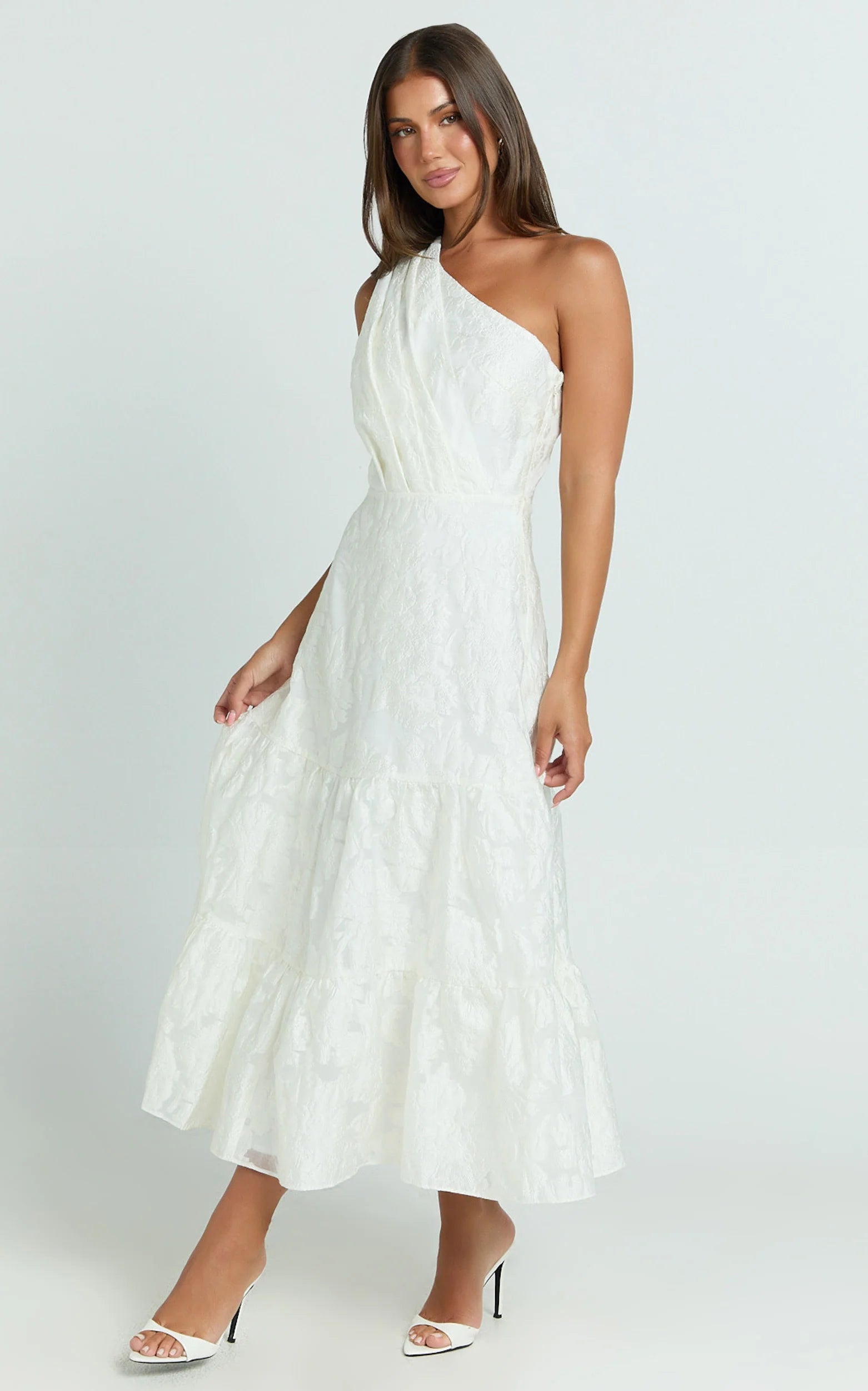 This one-shoulder beauty is an absolute vision in white, featuring delicate pleated tiers that flow effortlessly into a Haute Couture-inspired silhouette. Striking a perfect balance between minimalist chic and runway-ready glam, it's ideal for weddings, cocktail evenings, or stylish summer soirées.