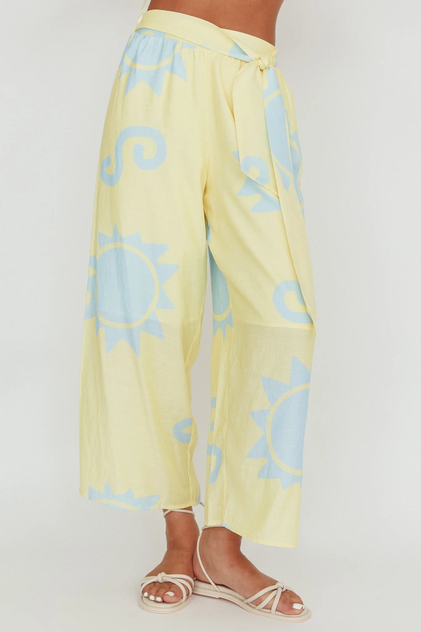 Bring a touch of paradise wherever you go with our Nectar wide-leg pants! It features a graphic sun print that is inspired by the vibrant life of summer. These pants are perfect for casual walks and backyard barbeques. Style these pants with the matching top to dress with ease or mix and match for endless possibilities.