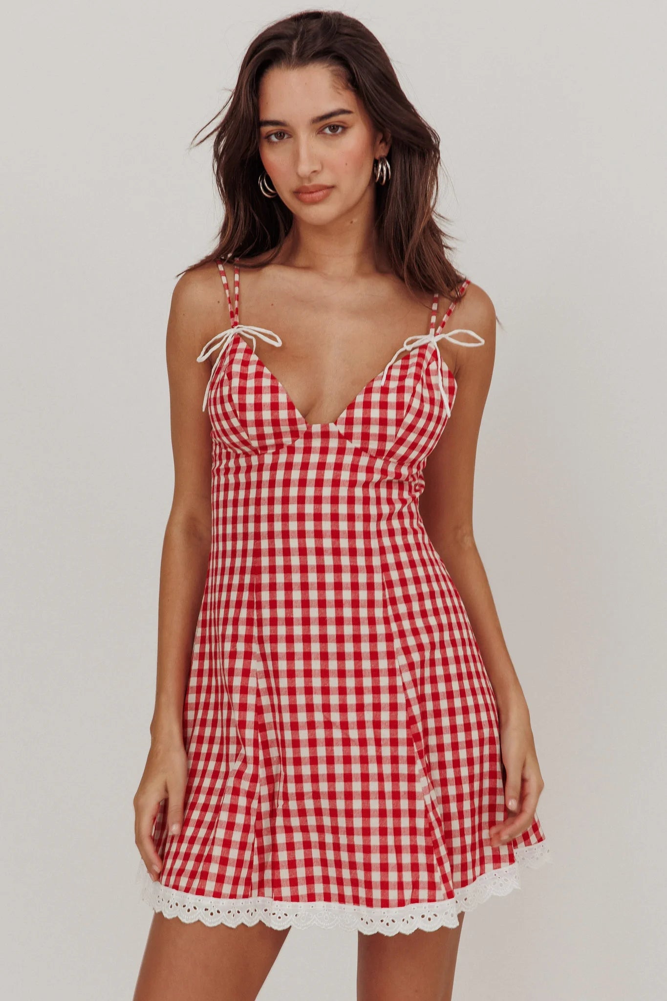 Make an entrance in our gorgeous Noelle mini dress. We are head over heels for its on-trend gingham print and lace-trimmed hem. It's perfect for a holiday party or dinner with your besties. Team it with kitten heels and a saddle bag for an It Girl look.