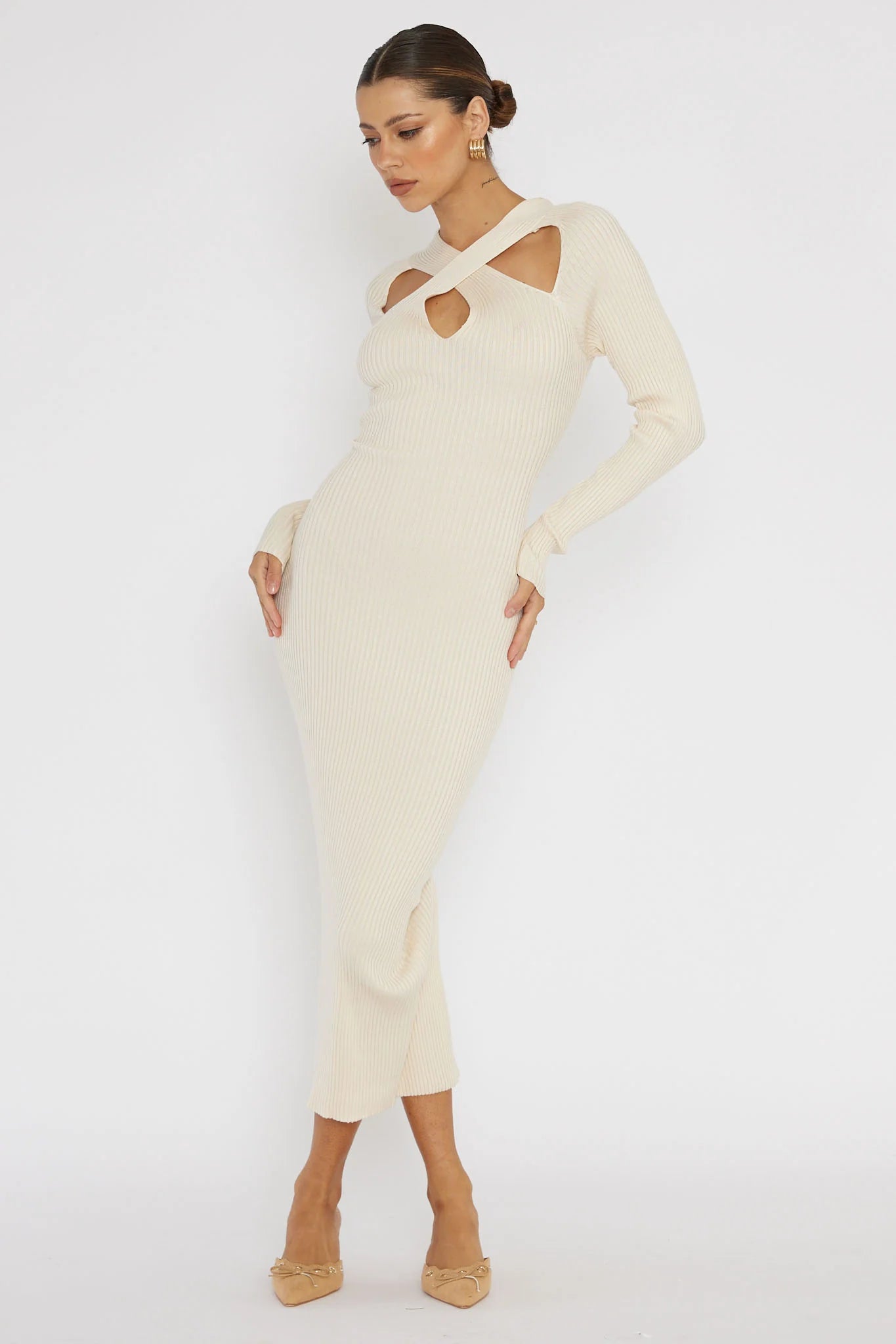 You'll be flooded with compliments in our gorgeous One Mind midi dress. It features a stretchy, ribbed knit fabric and long sleeves and is perfect for dinner with your girls or a flirty date night. Team it with pointed-toe kitten heels and a saddle bag for a head-turning look.