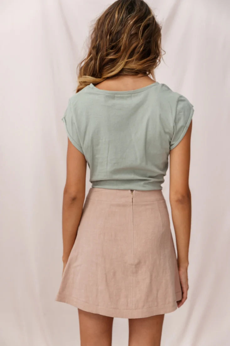 The weather's getting warmer, skirts are getting shorter and our Pia faux placket skirt will be the perfect addition to your wardrobe. Ideal for Sunday brunch or a casual date night with your beau, this super cute skirt is fully lined and features pretty tortoise shell button detailing in the front and an invisible zipper and hook-eye closure in the back. Pair with your favorite crop-top or plain tee for an effortless, fun look we are loving.