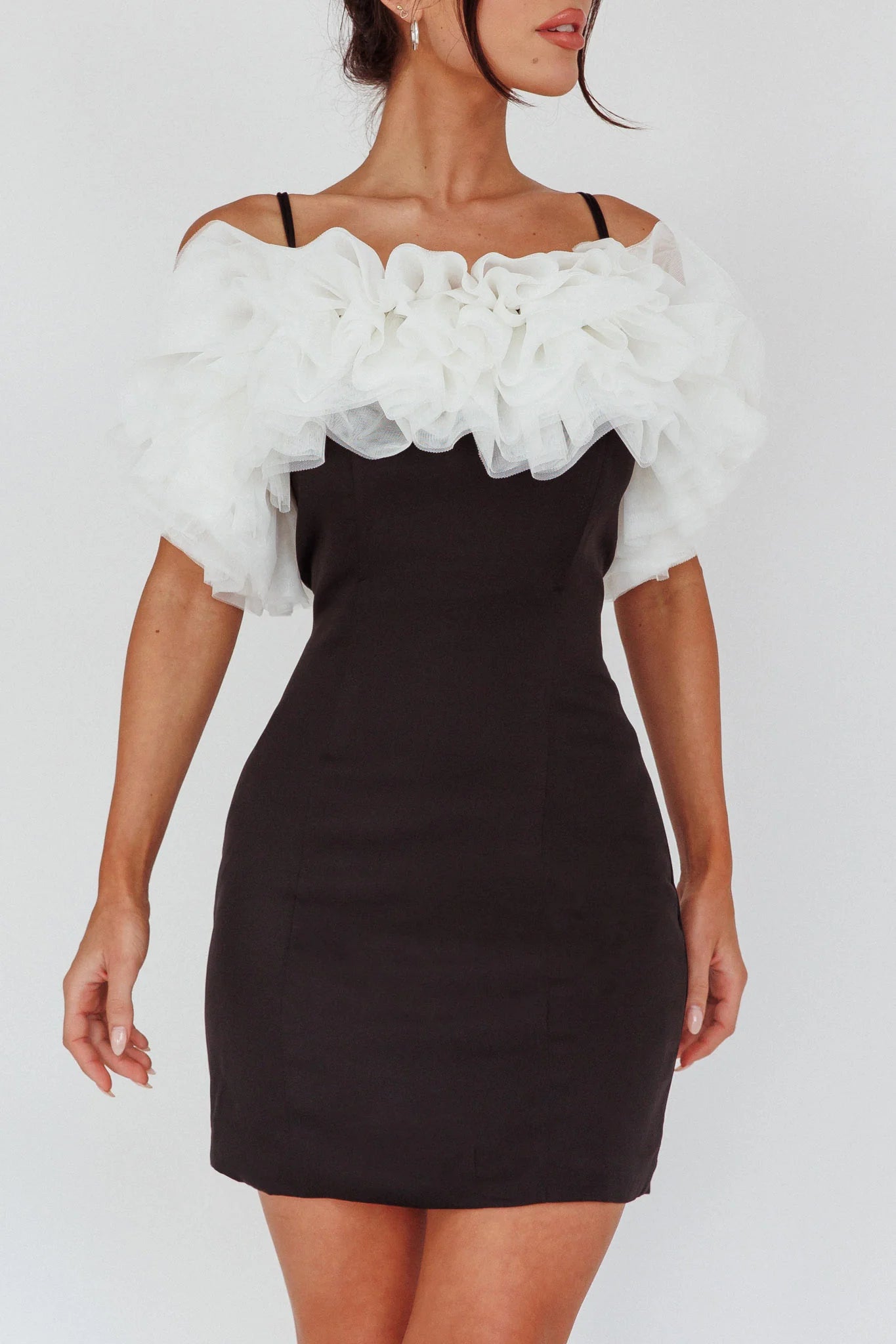 We are head over heels for our adorable Prima mini dress. Its tulle neckline is giving us all the ballet core vibes and we are here. for. it. Perfect for a girls' night out! Team it with black pumps and a clutch for a chic look.
