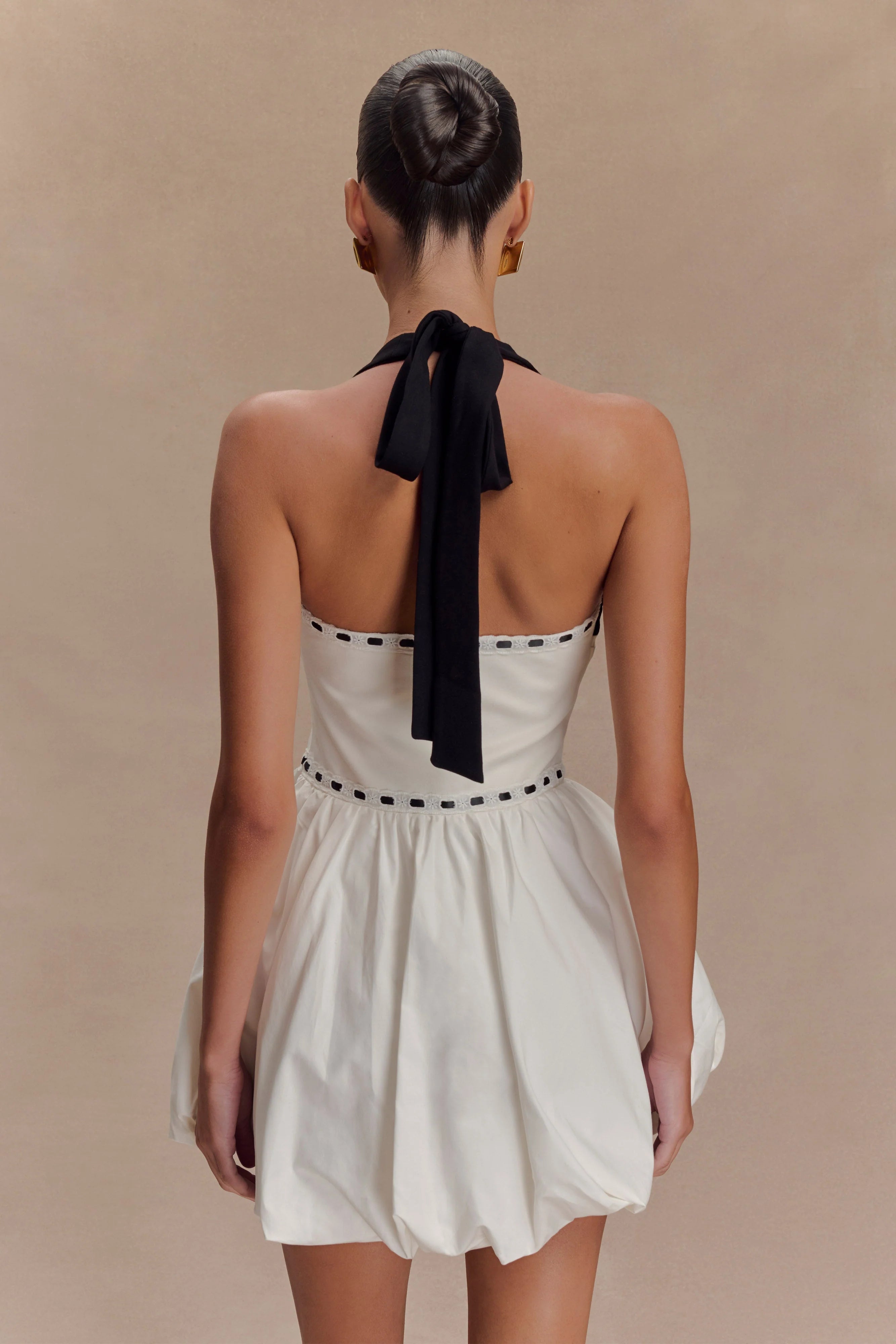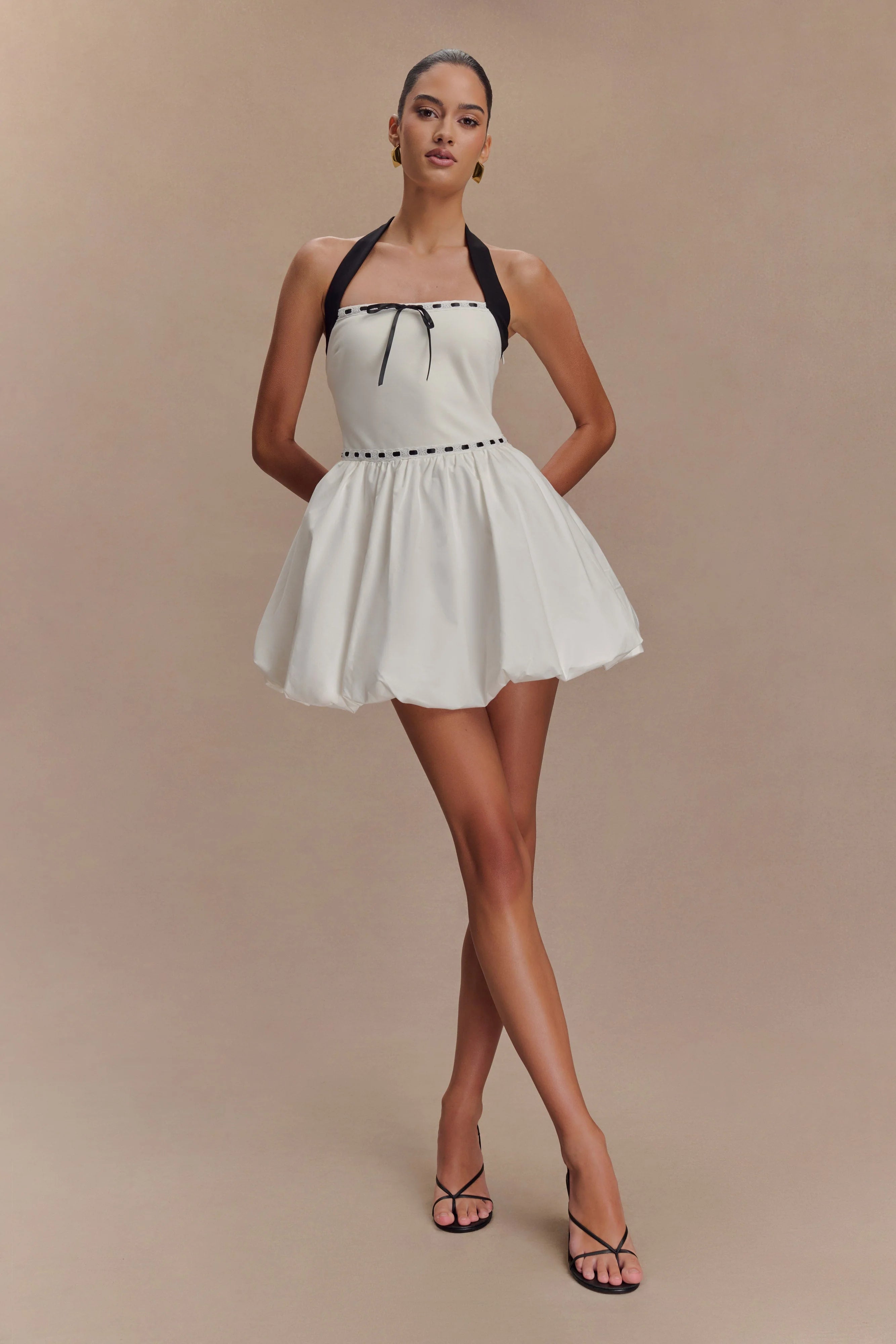Make a statement with the QUEENIE Halter Bubble Mini Dress, a playful yet elegant design that’s perfect for turning heads. Featuring a flattering halter neckline and a fitted bodice, this dress highlights your silhouette with sophistication. The bubble skirt adds a touch of drama and volume, perfectly balancing the sleek upper design. contrast trim and straps bring modern flair, while the back zip closure ensures a seamless fit. Designed in a chic mini length, this dress is your go-to for standout style at parties, dinners, or any occasion that calls for bold confidence.