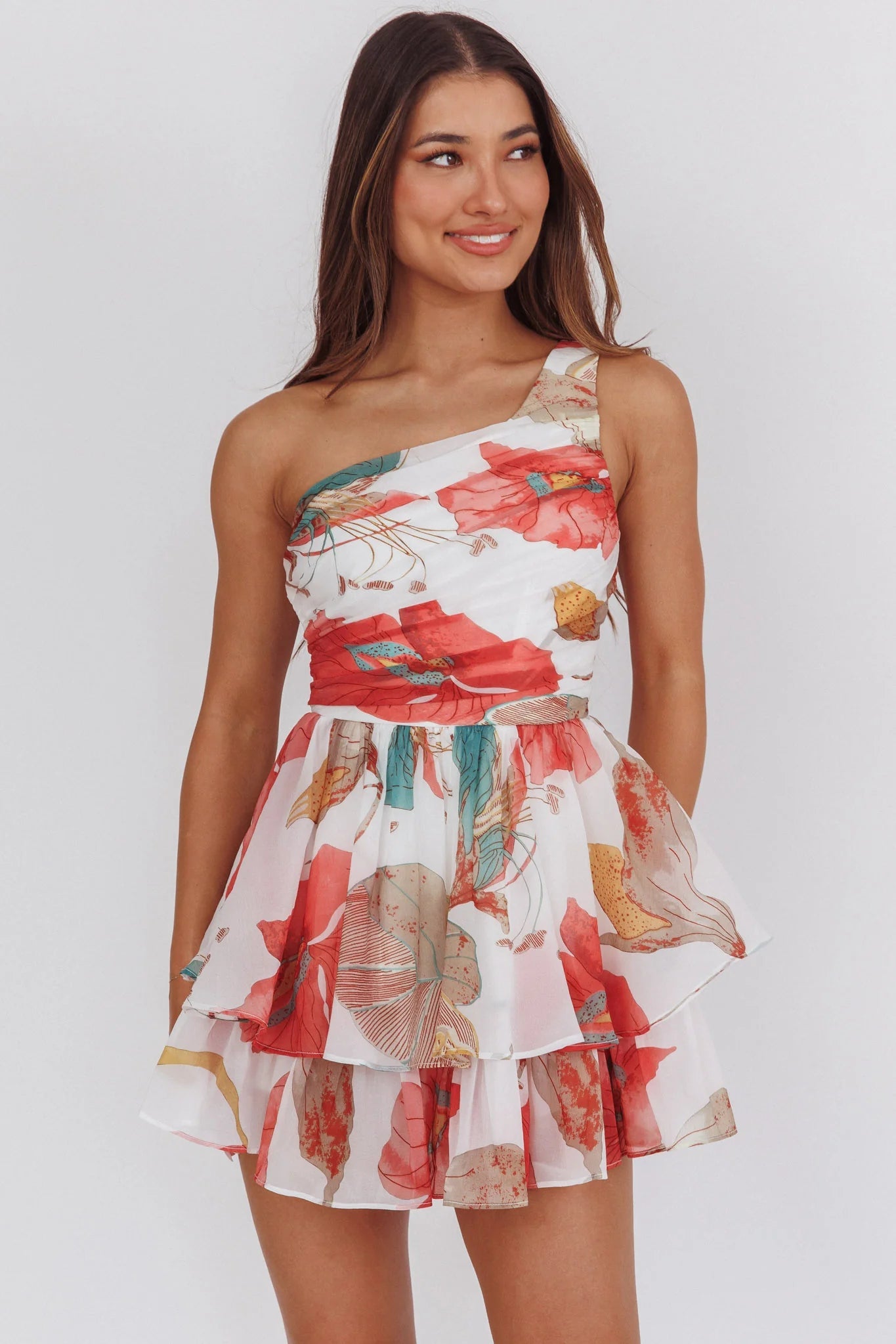 You will feel like a princess in our gorgeous Raelene romper. We are in love with its on-trend, one-shoulder design and layered ruffles in the skirt. Team it with strappy heels and a purse for a head-turning look.