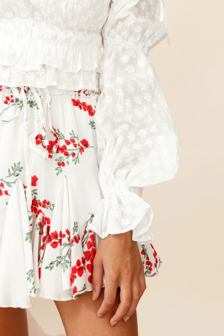 Twirl the day away in this adorable skirt featuring an elasticated waist with drawstring, floral print fabric and flounce-frill inserts around the hem. Pair it with a cool white tee or tank top. Dress it up with some tan wedges or go casual with crisp white tennis shoes for a look we are loving.